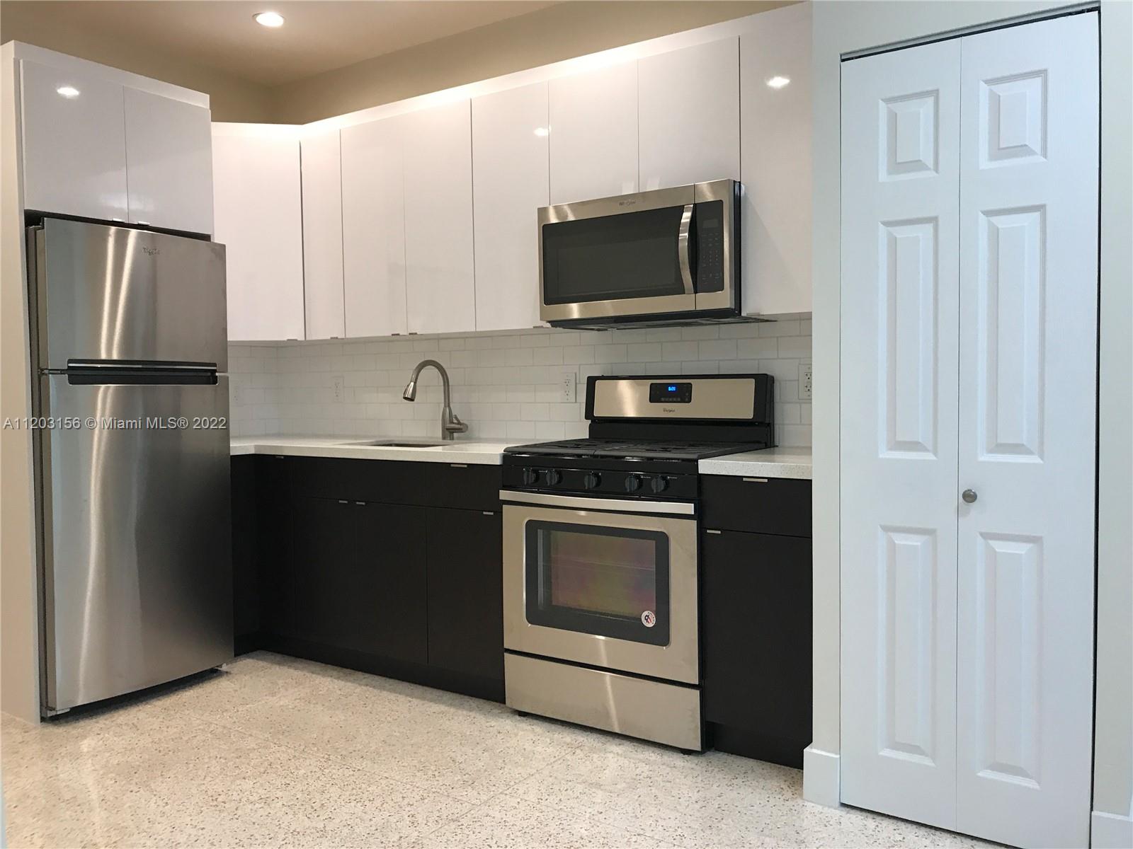Very Boutique and cozy 1 bed/1 bath apartment in a quiet condominium on the water. Best unit in the building completely remodeled in 2019. New granite flooring, new kitchen, new appliances, new bathroom, and new A/C units. Gated community WITH LAUNDRY facility on site. STREET PARKING. Special assessment to install impact doors will be paid by seller.