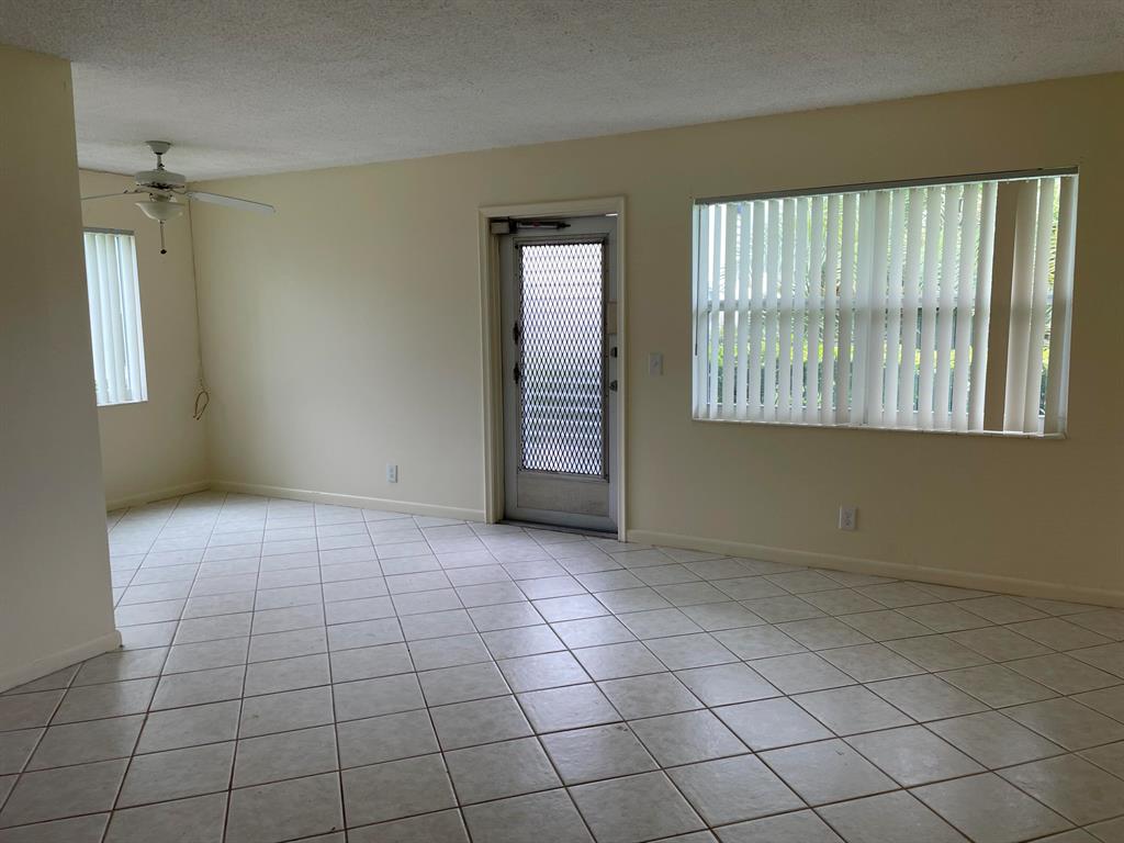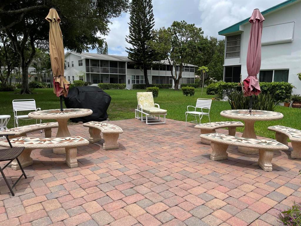 Sunshine abounds in this 1st floor corner unit! This 2 bedroom unit overlooks a lovely patio with lush foliage. This remodeled unit boasts a brand new kitchen with new appliances, cabinets and granite countertops. The full bath was just remodeled with a walk in shower. Sparkling tile floors complete this outstanding property. Central Air Conditioning, Cats are allowed. You will enjoy the South Florida lifestyle with amenities such as a fully equipped fitness center, club house with over 1000 seat theater, free transportation, close proximity to PBI airport, shopping, beaches and many restaurants