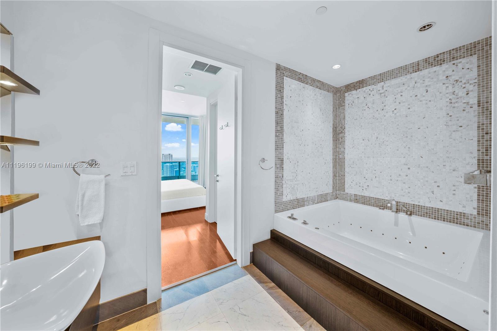 Fully furnished open floor-plan home in the Sky. Bianco Carrara #3 Marble Floors in the Living/Social areas & Para Rosewood Floors in the Suites. Enjoy the dazzling days & evening sunsets of Downtown in this 2 bed, 2.5 bath plus den. One assigned parking & storage included. See broker's remarks.