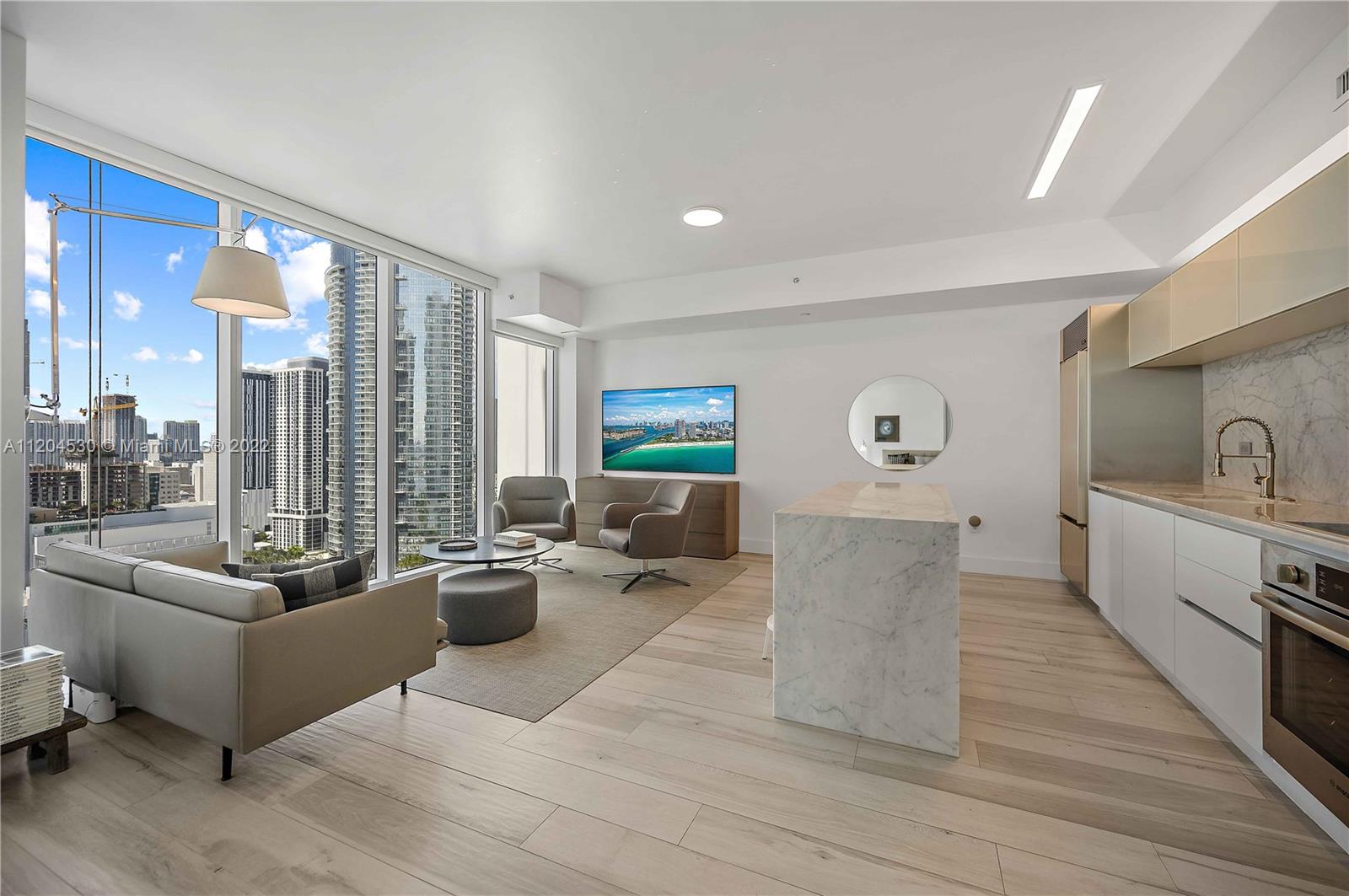 Masterfully redesigned customized suite 2608 offers the discerning owner the finest of finishes combined with tasteful elegance. A space ideal for entertaining with the stunning new island, backsplash and appliances. The ceiling to floor windows allows a natural glow throughout. Every detail was meticulously thought out for the new home owner. TMP offers membership to the Bentley Beach Club, a luxurious sky garden where one can relax in one of four pools, a state of the art gym inclusive of classes, morning coffee service, a stunning spa with sauna and a relaxation room. Perfectly located across the street from The Museums, The Performing Arts Center or The AAA and ten minutes from The Design District, Midtown and famed South Beach. Ten Museum Park is the ideal place to call home. .