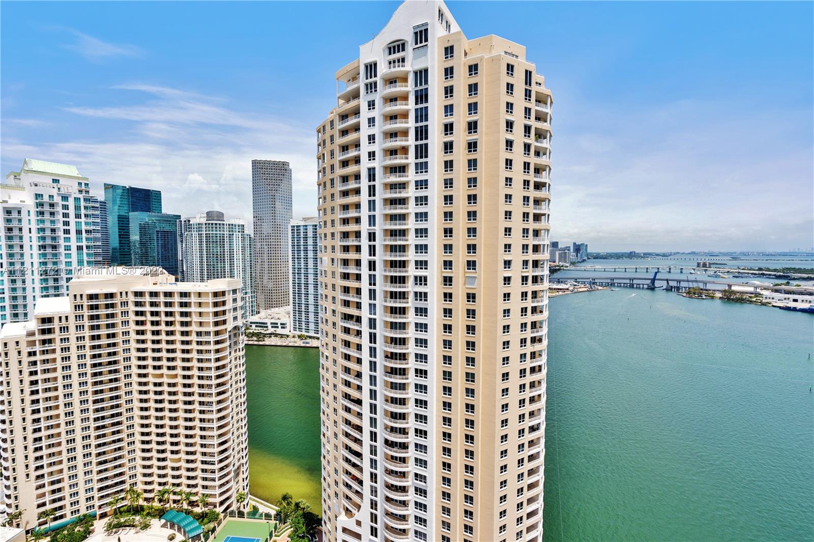 Come see this rare 35th floor 1 bedroom 1 & 1/2 bathroom 907 sq/ft. unit at Two Tequesta Point on the exclusive Brickell Key. The unit has extra high ceilings and stunning city/bay views. It comes with a Stainless Steel Fridge/dishwasher, marble/wood flooring throughout, an open kitchen, a nice sized balcony, plenty of storage, a walk-in closet, and a large master bedroom with beautiful views and balcony access. Two Tequesta is a luxury condo with a state of the art fitness center (w/ racquetball, basketball, cross-fit, massage & aerobics areas), an updated lobby, BBQ's/outdoor kitchen, a playroom, tennis, 2 conference rooms, free valet, 24/7 security, and a new clubroom for parties.
