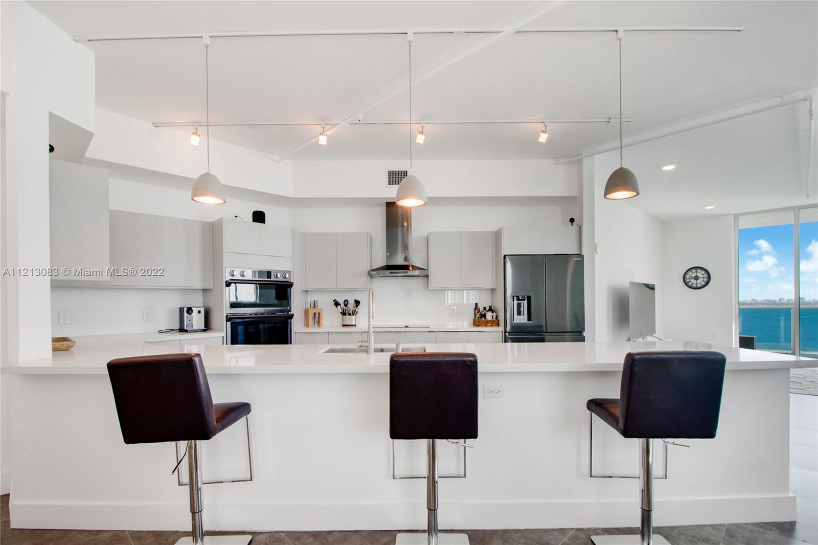 Welcome home to Star Lofts on the Bay Condo in Edgewater. This completely renovated & unobstructed modern waterfront condo, directly below the penthouse, is a flow-through design featuring 848 sq ft of balcony space & 10 ft high ceilings. Enjoy views of wildlife sunrises, sunsets, lunar events, fireworks, & more from every balcony & room in this urban oasis. The largest kitchen you can find, a bay front family room, dining room, & oversized master retreat make this open floor plan one of the most desirable in Edgewater. Fully renovated kitchen features new Samsung appliances, wine fridge, white quartz breakfast bar, & an abundance of cabinets. Pre-construction condos slated for 2024 being built next door are nearly half the size of this unit & are selling for $1.3M+.