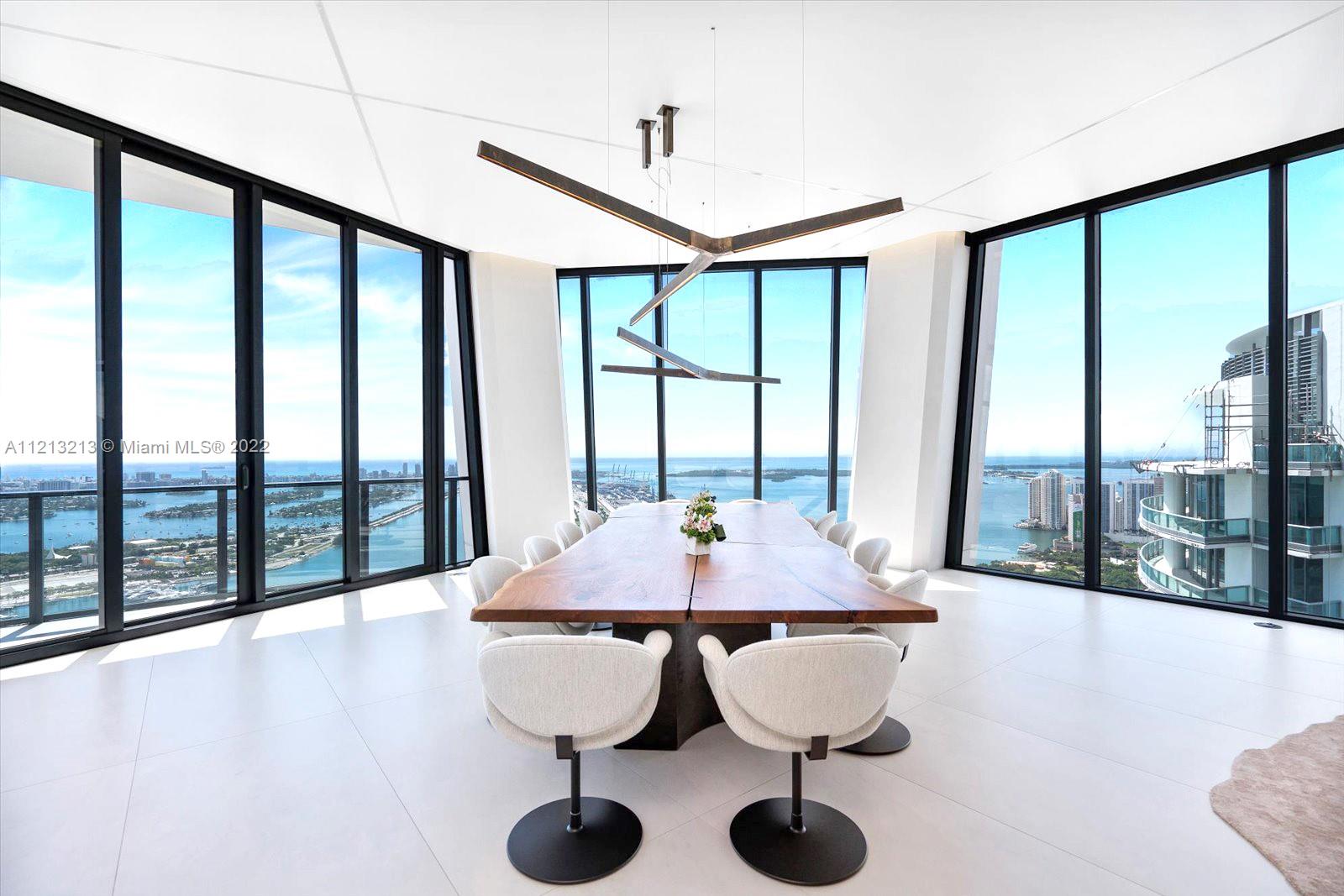 Welcome the most desirable penthouse in Miami. One Thousand Museum, artfully crafted by world-renown architect Zaha Hadid, feat. this jaw dropping 5 bd, 6.5 ba, full floor masterpiece w/ immaculate 360 degree views of Miami, combining the city’s glamourous allure & endless ocean captured from the oversized terrace & living spaces. Top-of-the-line finishes w/ custom details, make this extraordinary residence a genuine treasure. This is the only residential building in the US w/ a helipad, allowing residents to take their helicopter directly from the roof to wherever they please. Amenities incl. smart technology, indoor/outdoor state-of-the-art wellness facility & spa, sculptural sun & swim terrace, Sky Lounge for private events & more. 9,910 living sf | 1,216 balcony sf | 11,126 total sf