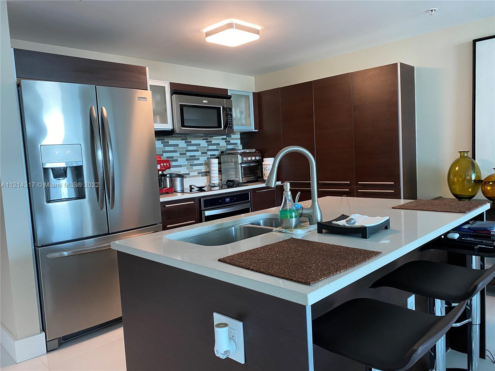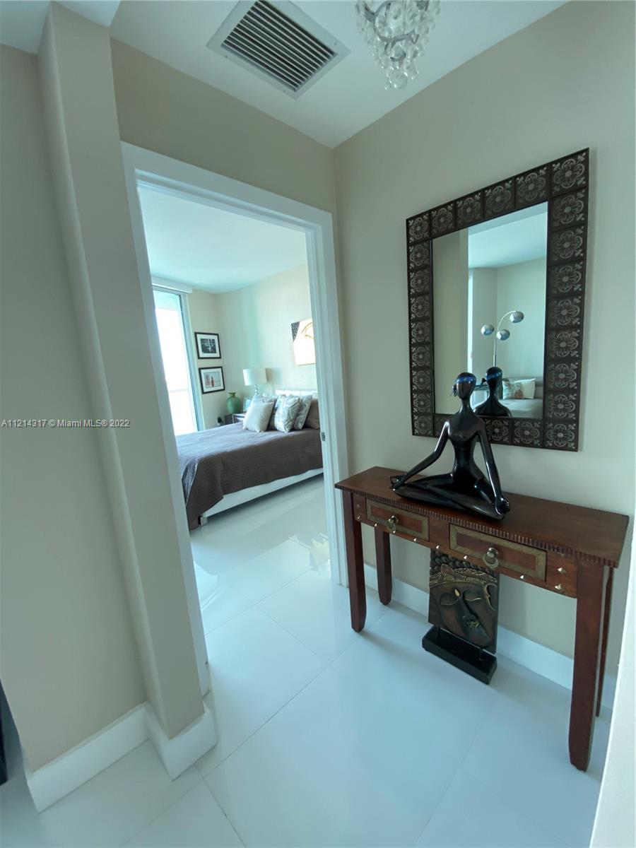 Absolutely beautiful and totally remodeled unit at Quantum on the Bay in Edgewater. 1bed+Den and 1bath, Gorgeous views of the Bay and Miami Beach, North east exposure, unit features: beautiful white porcelain floors through out , modern lighting, Italian kitchen with top of the line appliances and a beautiful modern bathroom, Den can be a guest bedroom or office, it has a custom made Murphy bed and storage, full size W&D. Enjoy amazing water views from the bedroom and living room. Building features: 2 pools, state of the art gym, modern residents lounge, theatre room, sauna, valet, convenient store and more. Beautiful Park across the street and restaurants just steps away from the building. You are just minutes away from Downtown, Brickell, Airport, Wynwood and Design district.