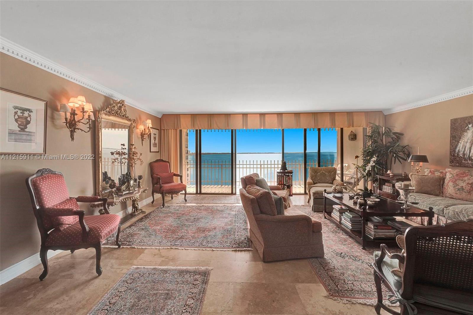 Breathtaking water views from the moment you enter this large 2BD/2BA with travertine floors in living areas and carpet in bedrooms. This floor plan is the largest of the two bedrooms with 1882 sq. ft. Grove Isle is a centrally located, 20-acre private island in Coconut Grove with marina, 24-hour security, valet, on-site management, dog park & so much more. Minutes to some of the best restaurants & shops. Available for showings starting June 13th. Agents, please read Broker's Remarks.