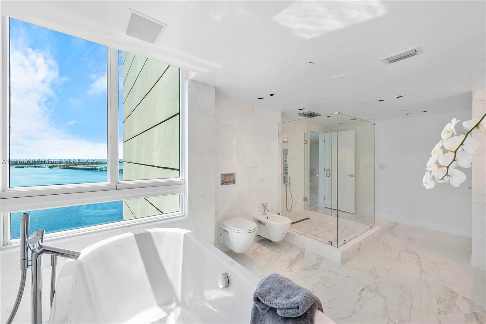 Step off of your private elevator and find this newly refinished 3 bedroom, plus den, 4 bath unit at Bristol Tower. The balcony wraps this 31st floor unit with unobstructed views of Biscayne Bay, Key Biscayne Island, and Port of Miami. New impact windows and sliding doors, white and grey ceramic floors throughout. Smart system that controls, blinds, sound system, and LED recessed lights. Kitchen boasts Snaider Italian cabinetry & Miele appliances. Large laundry room with Murphy bed. Bathrooms beautifully appointed with Duravit faucets and fixtures, mirrors are steam resistant and light up with a touch. Master bedroom has a private and grand view of the bay and large his&her closet with custom cabinetry. Come and live in one of Brickell Avenue’s most prestigious and well serviced buildings.