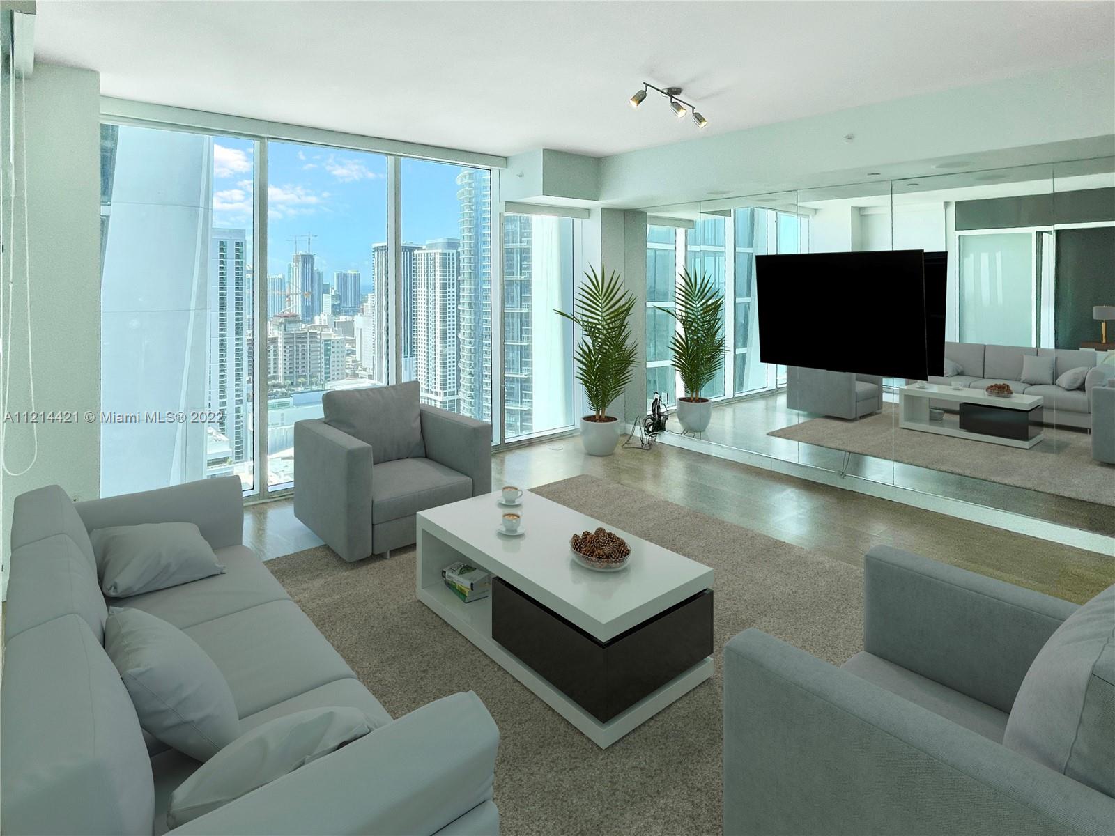 Beautiful 1 bedroom 1.5-bathroom high floor unit at 10 Museum Park with partial bay and city views. Located in the heart of Downtown’s Arts & Entertainment district and just a few minutes from South Beach. Ten Museum Park is a full-service luxury building with Spa, Fitness Center, and multiple pools. 808 SqFt unit with an open floor plan, floor to ceiling windows, modern kitchen with Sub-zero appliances and an oversized balcony.