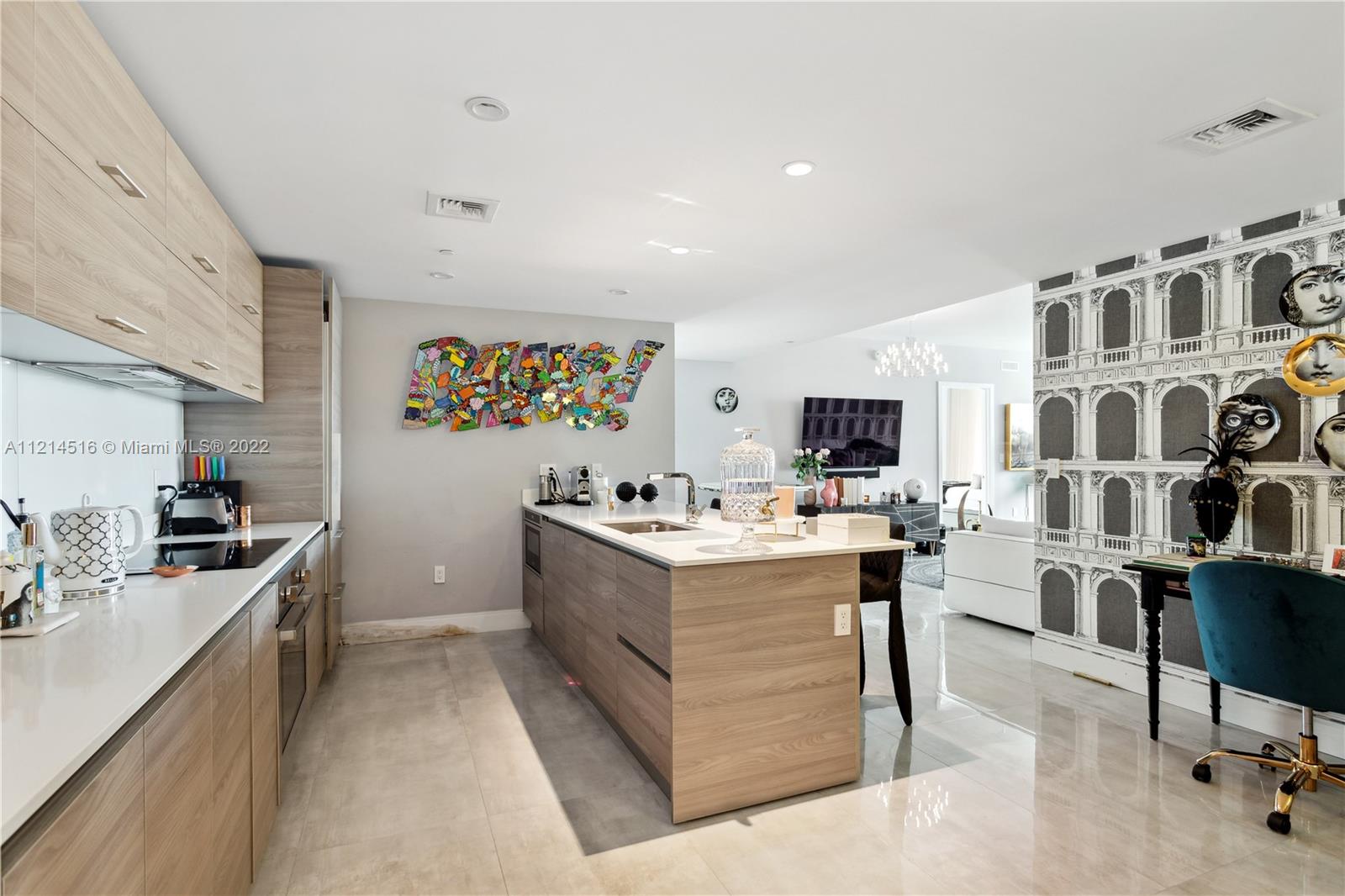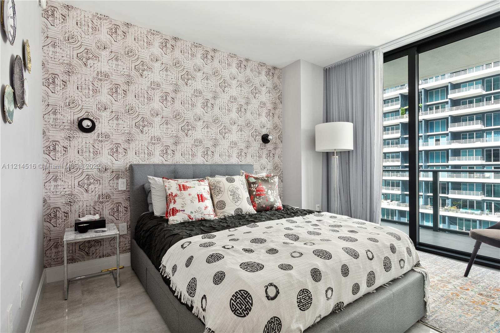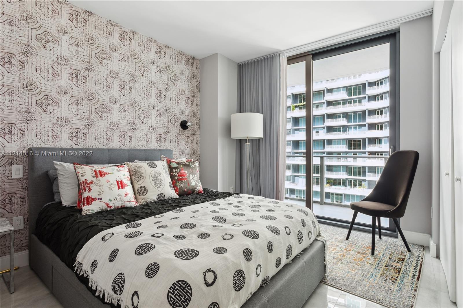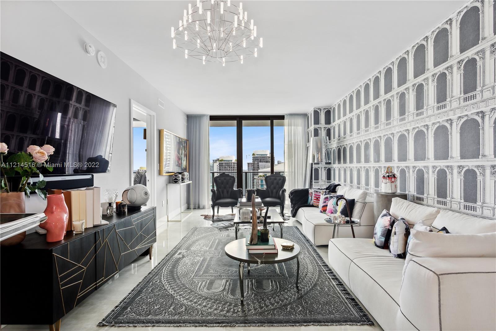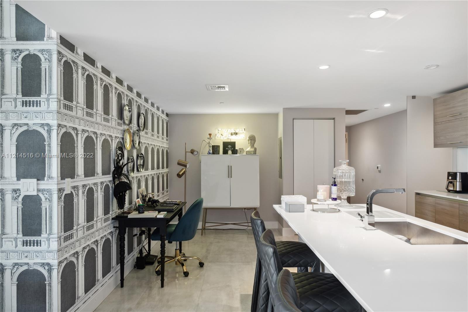 Large corner unit 2bed 2bath + Den. Wrap around balcony with stunning panoramic views to Miami skyline, the bay, and the ocean. Rated as one of the best finished apartments in the high floor 2-bedroom category. Italian A+ Porcelain Ceramic floors throughout the unit, top of the line appliances, built up closets, black out & sheer curtains, Interior spaces designed by Fornasetti. SLS Brickell is combined with 5-star hotel services; amenities include roof top pool (for residents only) spa, fitness center, movie theater, restaurants and more.