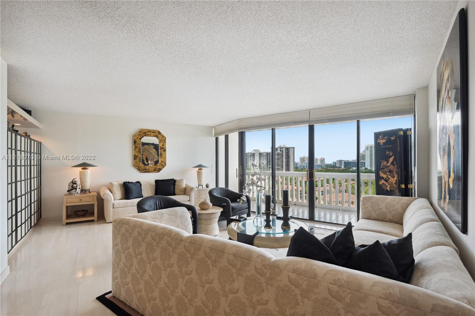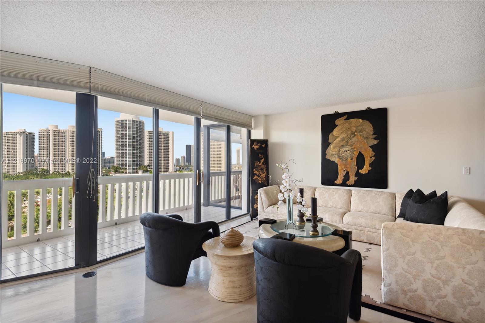 Enjoy panoramic, East views from this impeccable, Williams Island 1230sf, 1 Bedroom + Den/2Bath condo which can be converted to a second bedroom if desired. The fine detail of this beautifully remodeled traditional style eat-in kitchen is sure to please. This condo features wood floors, amazing closets, 2 balconies, a den area which can be closed for a second bedroom and a large storage room. Owners may park their own car or use valet. Enjoy the wonderful community amenities..a 27,000 sf spa with classes & indoor swimming pool, a 16 court tennis & pickle ball club, 3 restaurants, social events, an onsite marina & courtesy bus. Tranquility in the heart of the city! Cash offers only.