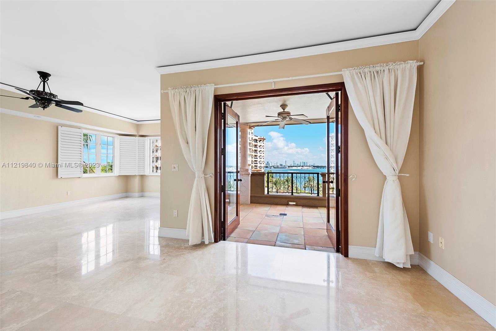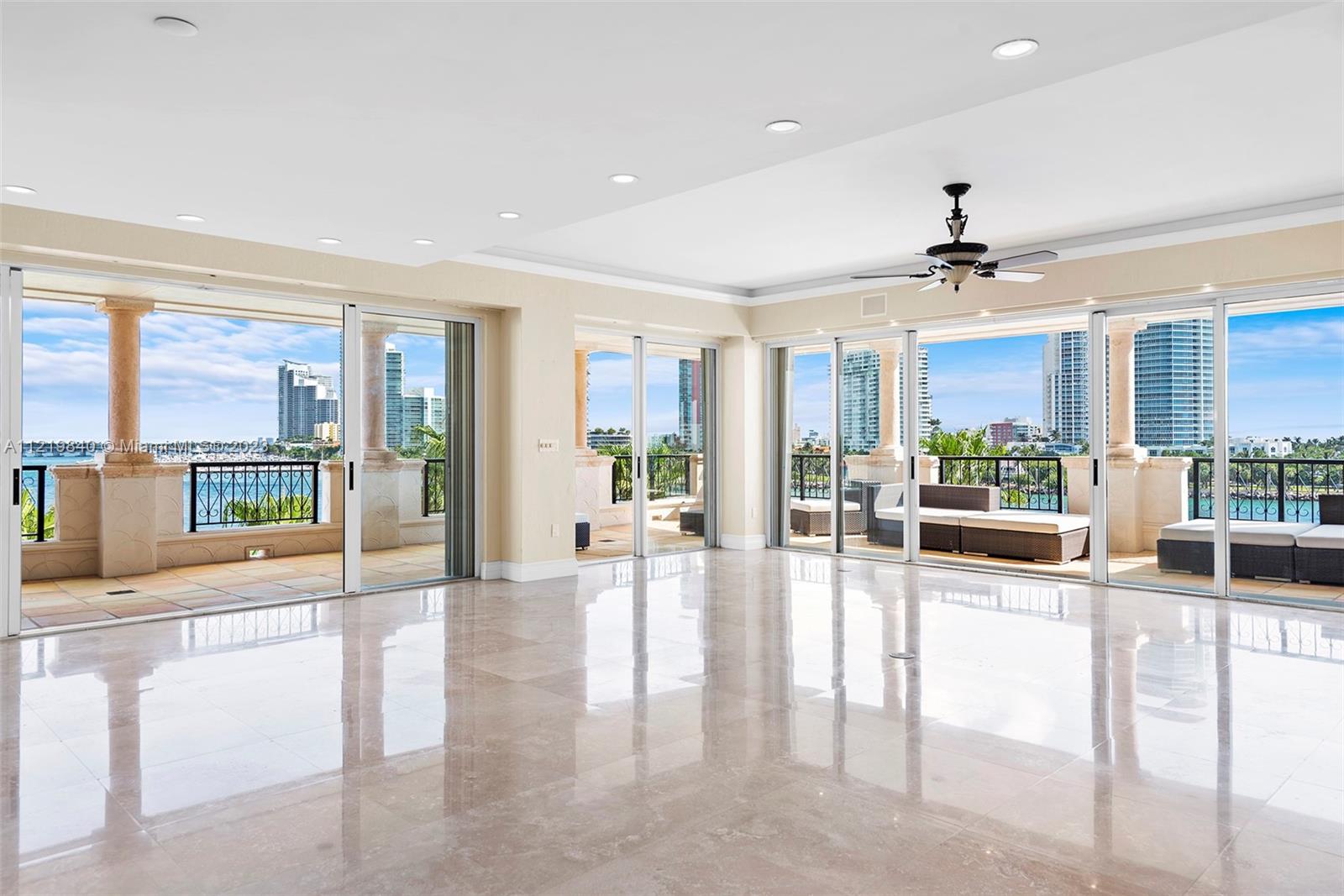 Experience Fisher Island living in this stunning oceanside unit located in Villa del Mare! Features include expansive wrap around terraces with unobstructed 180 degrees of beautiful views of the ocean, Miami Beach and Government Cut from a 5th floor. This pristine 3 Bedroom, 3.5 Bath residence encompasses 3,140 sq ft interior, marble floors throughout, custom bar, top of the line appliances, private terrace in the master bedroom and guest bedroom and many more features. Easy to show!