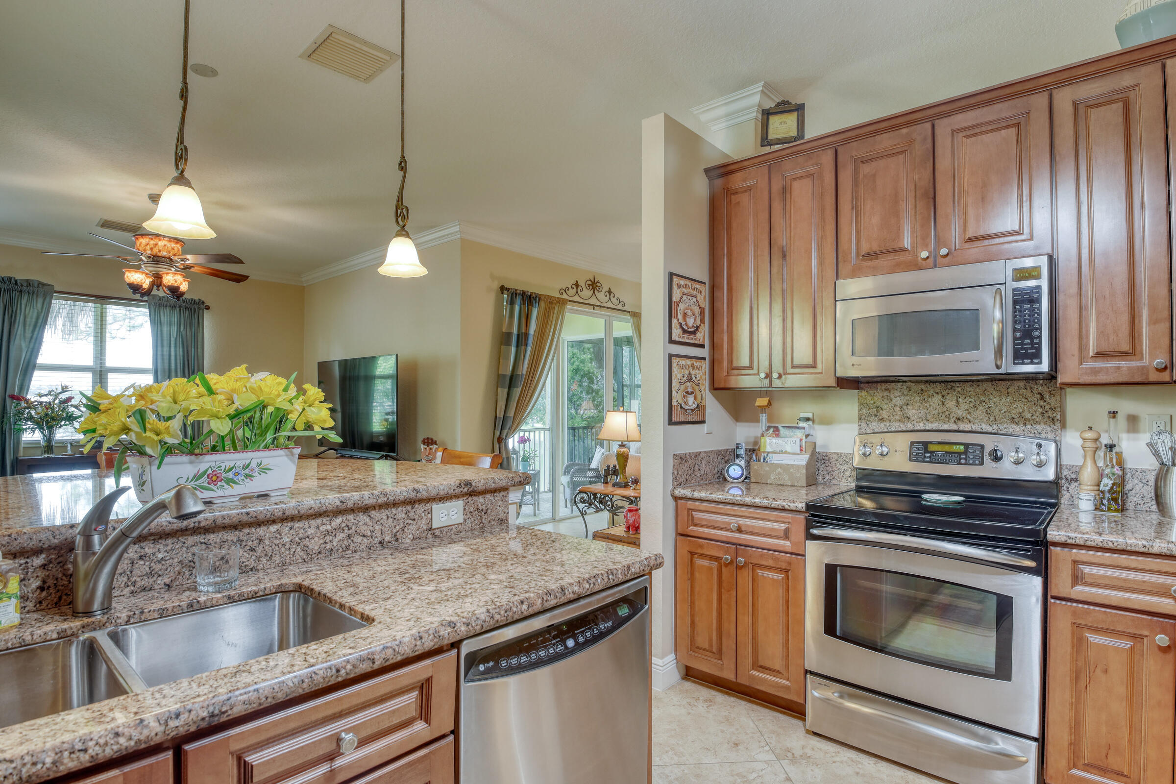 This is an absolutely stunning, 3 bedrooms, 2 bath LAKEVIEW coach home with elevator, 2 car garage & HURRICANE IMPACT WINDOWS with breathtaking views of the lake and sunsets!!! This home is so spacious you won't even realize you're living in a condo. Unique floor plan with living room, family room & formal dining room. Kitchen boasts 42'' maple wood cabinets, granite counters, newer SS appliances (refrigerator new in 2022, double oven w/convection), undermount lighting and a breakfast bar. The entire living area is adorned with crown molding and beautiful window treatments. Tile on the diagonal. The owner's suite has a tray ceiling, a set of sliding glass doors that lead out to the patio and the His/Her's closets are custom fitted with closet system. The owner's bath has dual sinks,