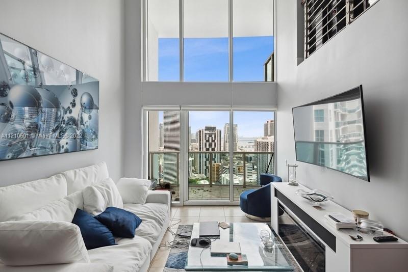 Incredible 2 bedroom 2 bathroom loft unit on the 22nd floor (44th floor off the ground level), just one floor under the penthouse. Enjoy unobstructed north views of Downtown Skyline, the Miami River and Port of Miami from huge lower balcony or from the upper master bedroom balcony. TWO parking spaces and one of them located on ground level right next to the elevator. Unit has double height windows, great storage spaces throughout, and huge master walk in closet. Building is walking distance to Brickell City Center, Metro Mover 5th Station, Riverside, Bayside Market Place and more! Five floors of resort style amenities including: state of the art gym, BBQs, pool, ping pong and Spa with steam, sauna, lockers and jacuzzi overlooking the Miami River. Great for investors as well!