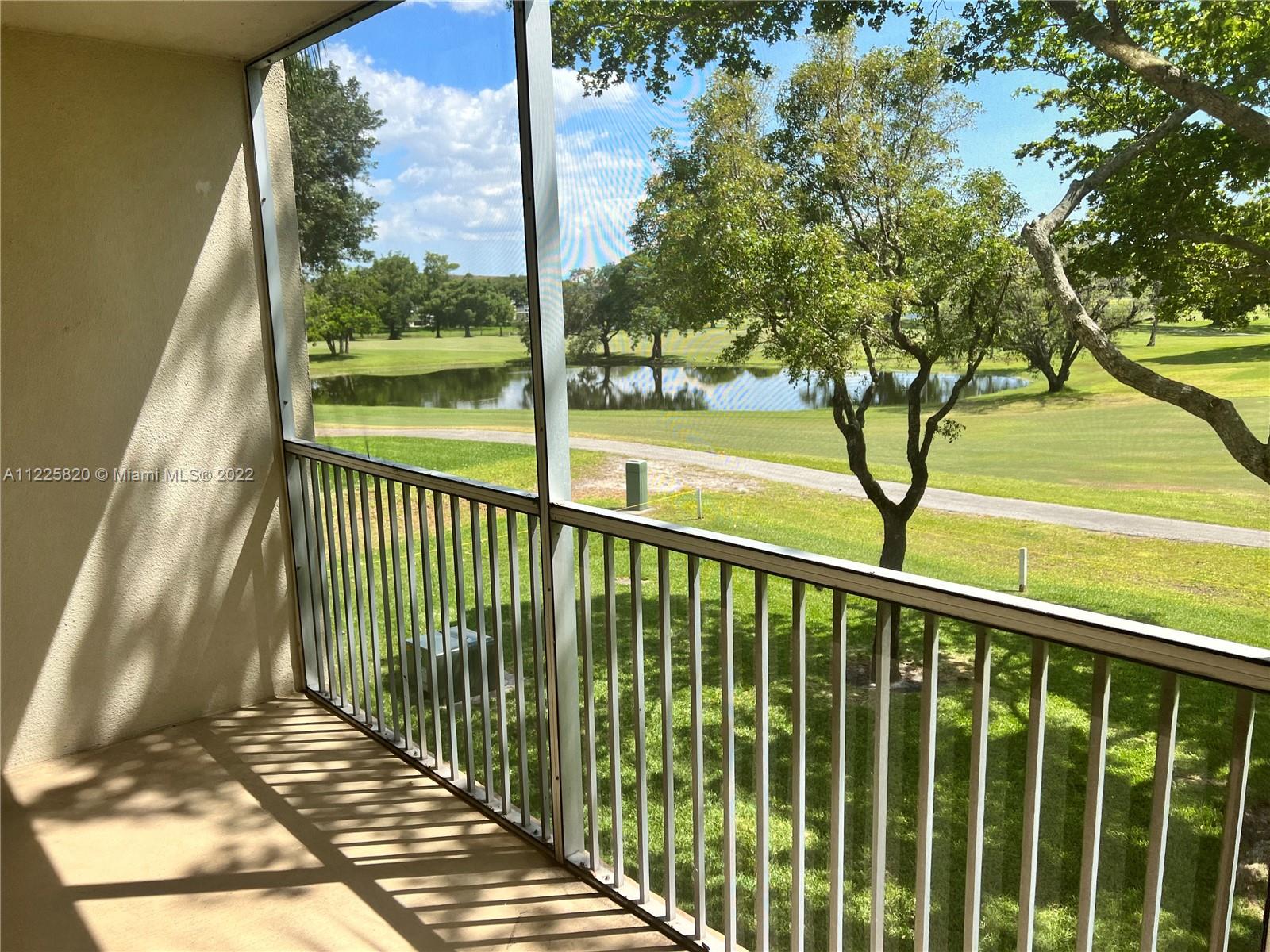 Step inside this light, bright, large corner unit w/views of the peaceful lake & golf course. On a hot summer day enjoy the nice breeze from the kitchen window. 1166SF of living space, unit has 2 beds & 2 full baths, freshly painted & cleaned. Oversized balcony w/sweeping views of golf course & lake. Storage closet adjacent to the balcony along with a small storage cage in the on-floor laundry room. This is one of the buildings that has an elevator along with stairs conveniently located just outside your front door. Front row parking spot & guest parking. Century Village is a 55+ community that has resort-style amenities including pool, tennis courts, club house &more. Unit being sold as-is. Original owner with no updates, ready for a new owner to create their happily-ever-after.
