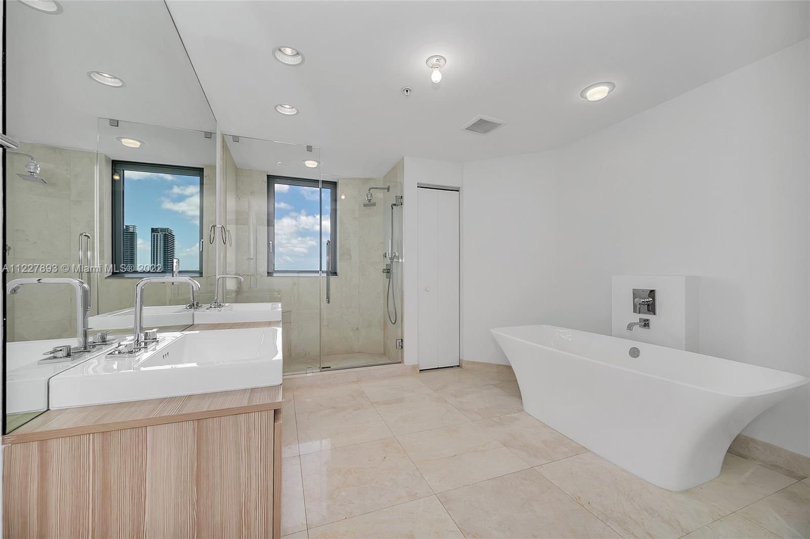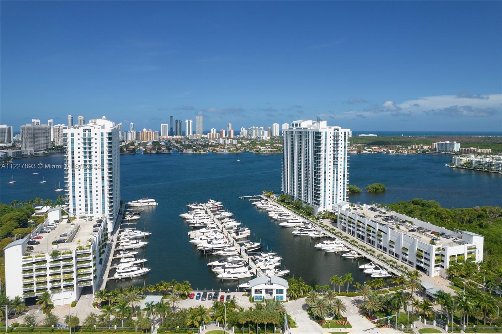 Gorgeous southeast facing 2 br+ den + 3 full bathrooms. Marble Floors, remote controlled shades throughout, blackouts in bedrooms. Located in the Premiere South Tower of Marina Palms with common areas designed by Interiors by Steven G. Beautiful luxury excellent security, services and amenities which include guarded gate entrance, playground, large heated pool, summer kitchens, state of the art gym with stunning pool + water views, spa with treatment rooms, massive club room with billiards table and 80" TV, teen hangout room and toddler playroom. Vacant + easy to show.