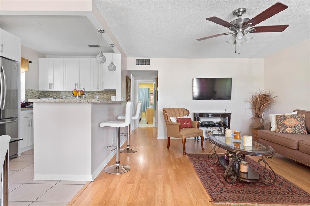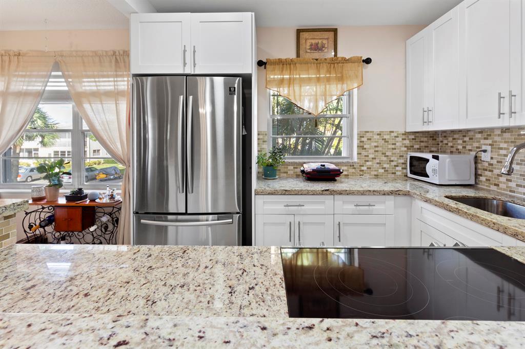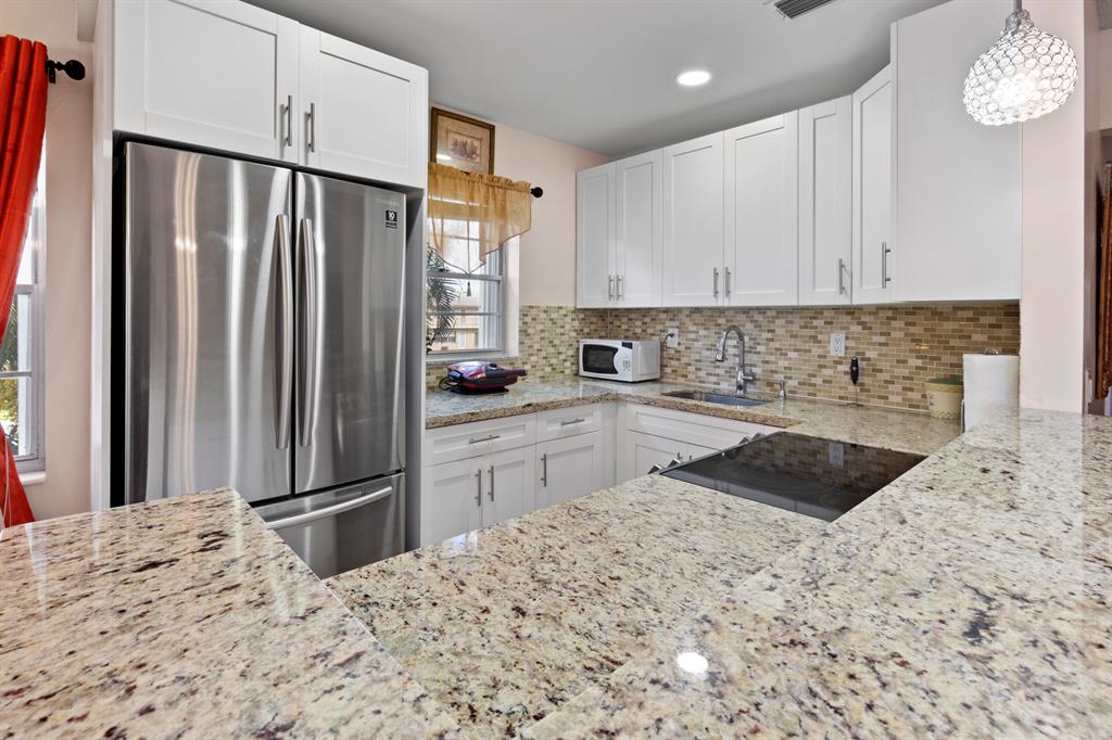 Amazing opportunity to buy this REMODELATED CONDO ready to move-in . Located in a desirable area. Century Village West Palm Beach, a 55+ resort style active community. This unit is an interior corner unit with a wide terrace and green nature view. Some of the features are Laminated flooring, Central A/C, As well as an extraordinary open kitchen with solid wood, white shaker cabinets which produces a perfect contrasting effect all cabinets have soft-close drawers and cabinet doors. You will enjoy the South Florida lifestyle with amenities such as a fully equipped fitness center, club house with over 1000 seat theater, three pools, free transportation, close proximity to PBI airport, shopping centers, beaches and many restaurants with different type of gastronomic food from many places over