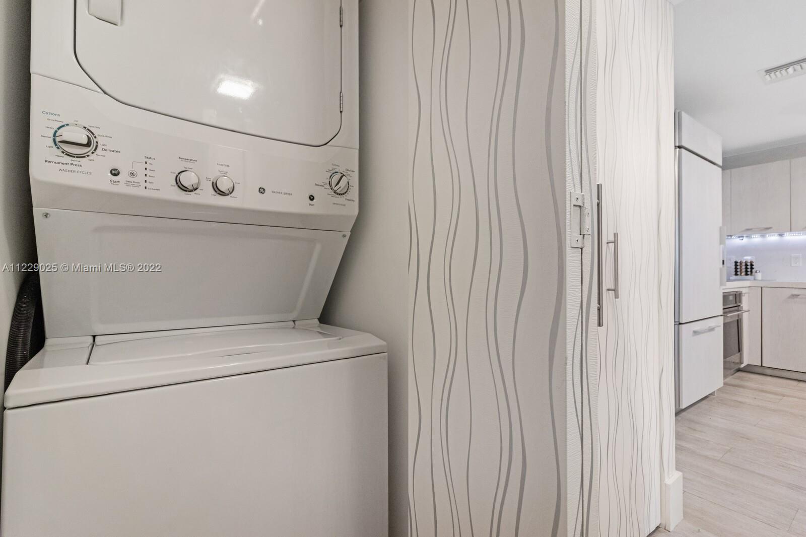With stunning views from the spacious terrace, this modern 1 bedroom/1 bathroom condo is located in the heart of Miami's vibrant & fashionable Brickell area. Residents only rooftop sky pool deck with panoramic views & luxuriously landscaped 9th floor pool terrace & mini golf area, state-of-the-art fitness center & business center with complimentary coffee/tea bar. Two stunning entertainment rooms available for private events. Multilingual staff, 24-hour security, & more! One valet parking space included. Additional valet parking is $200/month. Washer/dryer in unit. Furniture included in purchase! HOA: Master $337.61/m + East $286.80/m