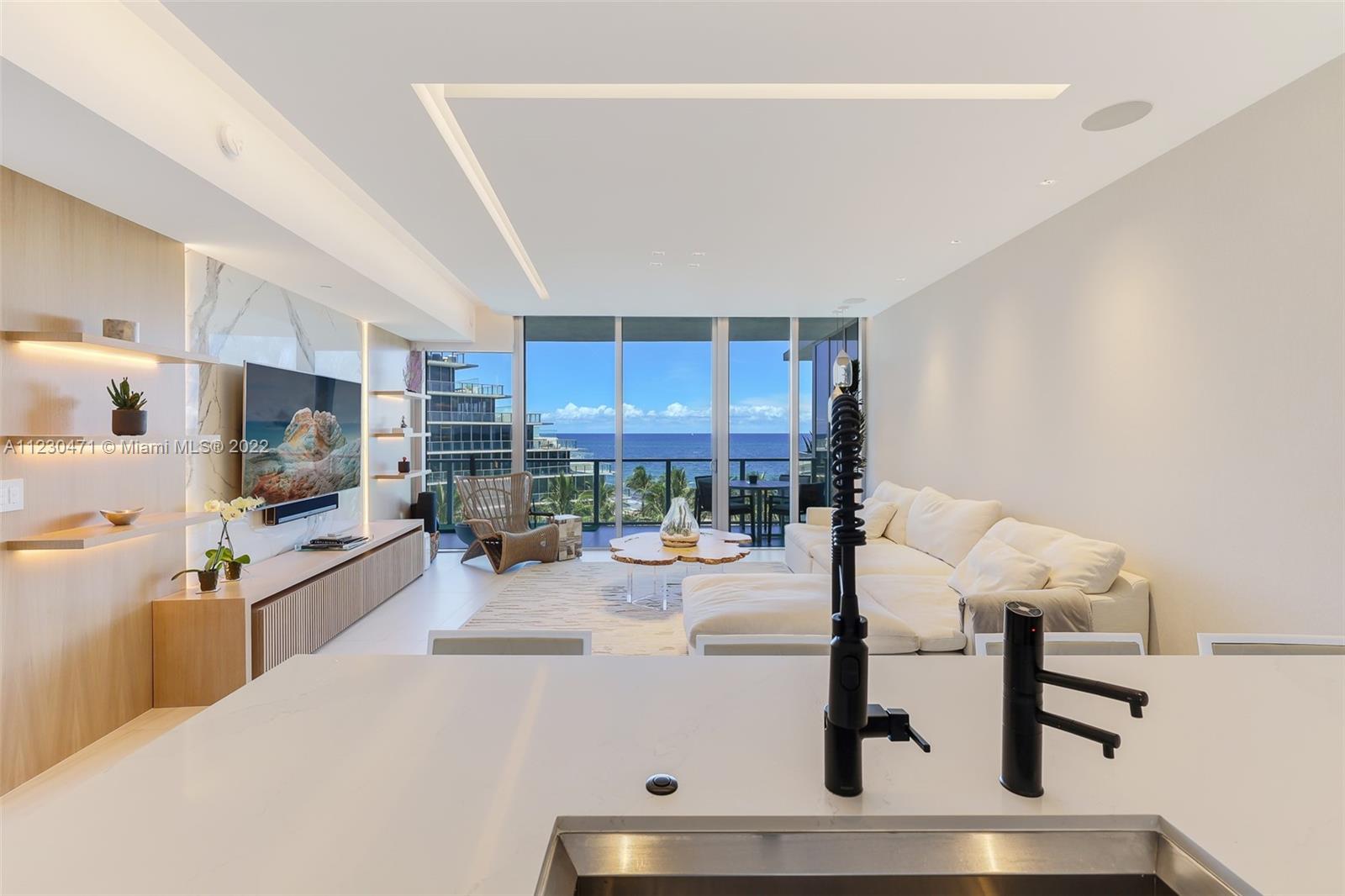 This is it! Spectacular Direct Oceanfront views, custom interiors, elegant and professionally designed turnkey residence. A one bedroom plus den that lives like a two bedroom! Custom designs through out all the spaces from built in living area, custom designed built in Primary suite and a den with a gorgeous built in murphy bed system with closet by Anima Domus. No expense spared on this pristine residence with sweeping views of the ocean. Located perfectly on the 5th floor, with unobstructed views of the ocean and lushly landscaped property. Luxurious resort lifestyle at Auberge Beach with onsite DUNE Restaurant and Spa, beach attendants, golf simulator, wine and cigar lounge and so much more! Move into this spectacular oceanfront property just in time for the season!