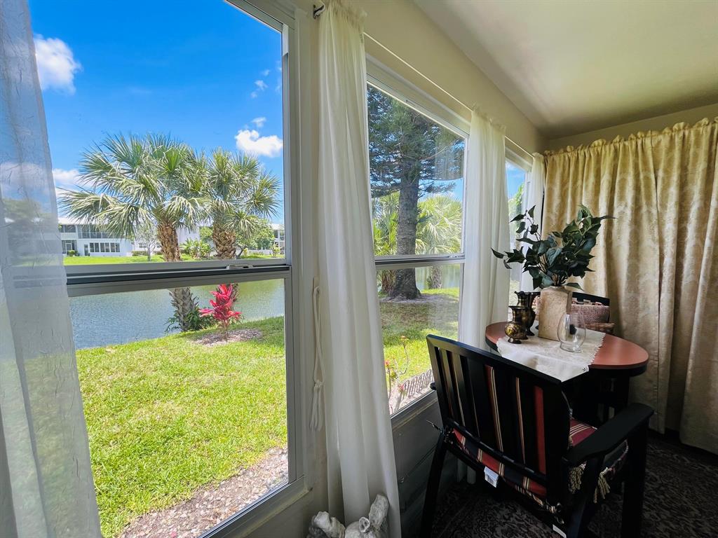 GROUND FLOOR, Furnished Immaculate 2 Bed 2 Full Bath Beautiful WATER VIEW Condo. UPDATED Kitchen, Wood Floor, Impact Windows on long lanai with door to go outside. Central Air Conditioning. Close to the Somerset Pool, Pickle ball and tennis courts. Come and enjoy a piece of paradise in Century Village West Palm Beach Housing for Adults 55+ Century Village offers shuttle buses to many places, entertainment, tennis, boating, swimming, state of the art health & fitness center. and a large theatre. Century Village is close to the Turnpike, 5 minutes to I-95, CityPlace downtown upscale shopping, the Intracoastal and the PBI Airport and close to Palm Beach.