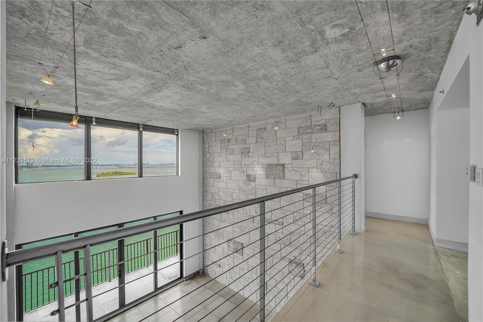 Open water views from the moment you enter! Spacious loft style penthouse duplex in boutique building with 3 bedrooms PLUS den/Media room, and 3.5 baths. First floor has open living/dining with 18ft ceilings, guest suite with ensuite bath and separate laundry room. Second floor has master suite, guest bedroom and den/media room. Polished concrete floors and ceilings througout. Unit comes with 1 assigned parking spot plus addl parking for extra car and guests. Amenities include bay front pool, tennis court, day dock, party room, storage for paddle boards and new gym in the final stages of construction. Easy access to South Beach, DT Miami, Wynwood and Design District.
