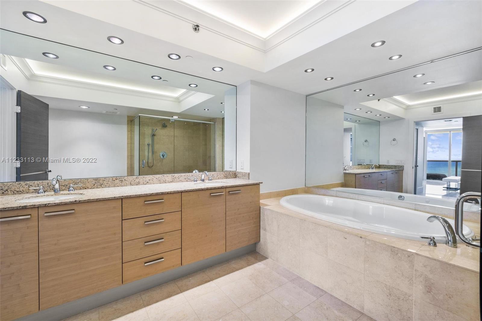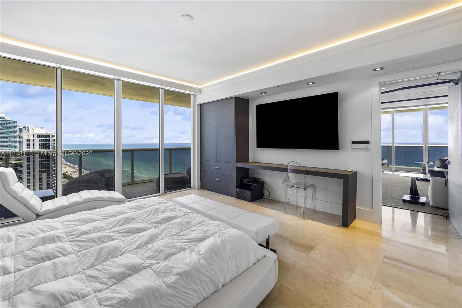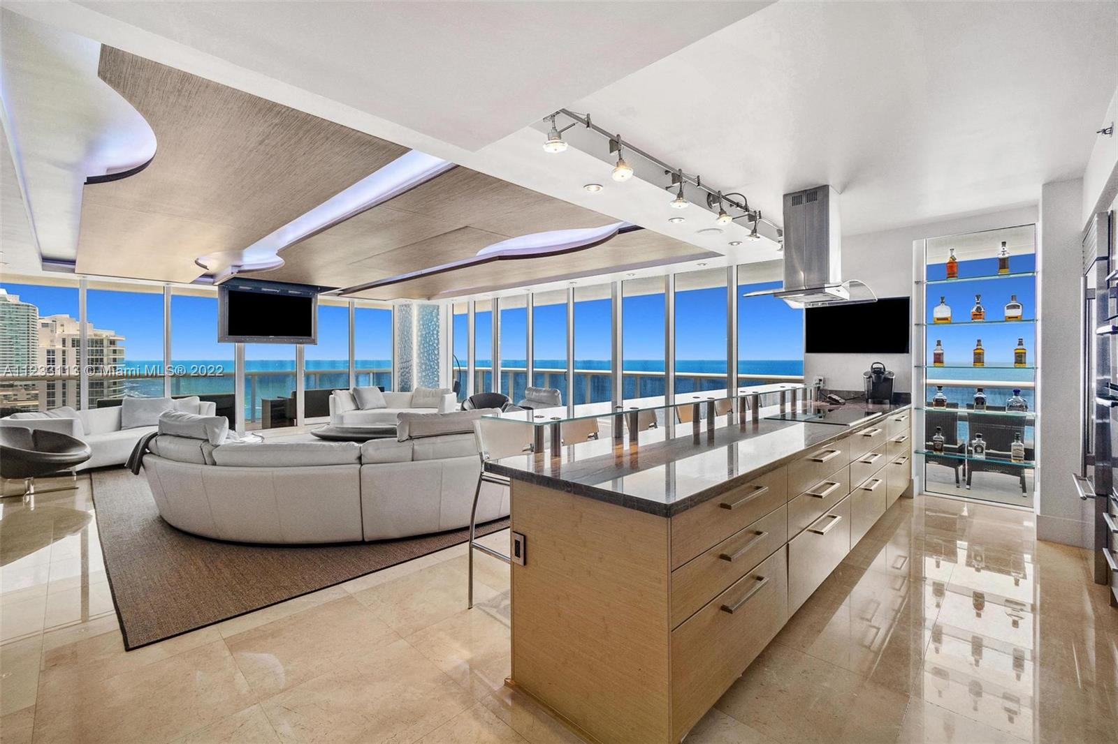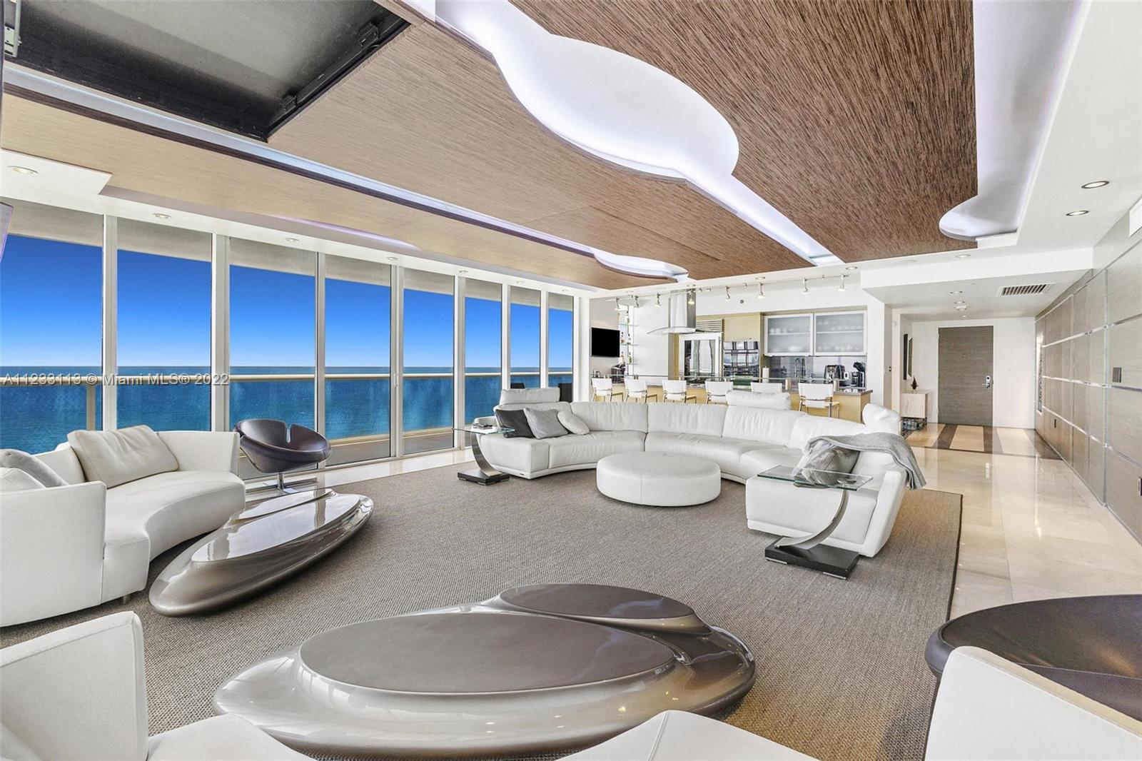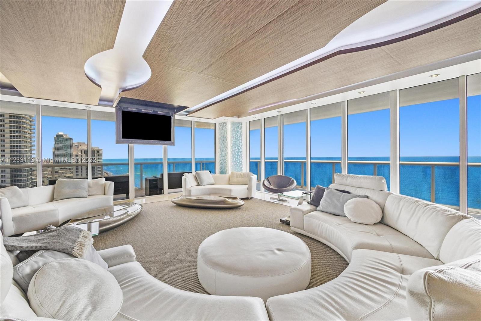Truly UNIQUE Turnkey NE Corner Unit by well-known Interior Designer! 270 degrees direct Ocean Views surround this One-of-a-Kind Entertainment living room w/ floating ceiling, remote controlled i-player LED 3 color Kinetics lighting. It is the Most updated unit at Beach Club on market today with custom Designer details throughout, wood-paneled walls & marble flooring, Interlam wall panels, SMART system, electric shades, recess lighting, Roche Boboise furniture & much more! Primary Bedroom Suite has built-in furniture, his & hers dressing rooms, built-in walk-in closets, Remodeled kitchen w Subzero refrigerator & induction cooktop. 5-star resort-like amenities, a magnificent 2-story lobby entrance, security, 24-hour valet, 5 heated pools, 50.000 sq. ft. SPA & gym overlooking the Ocean.