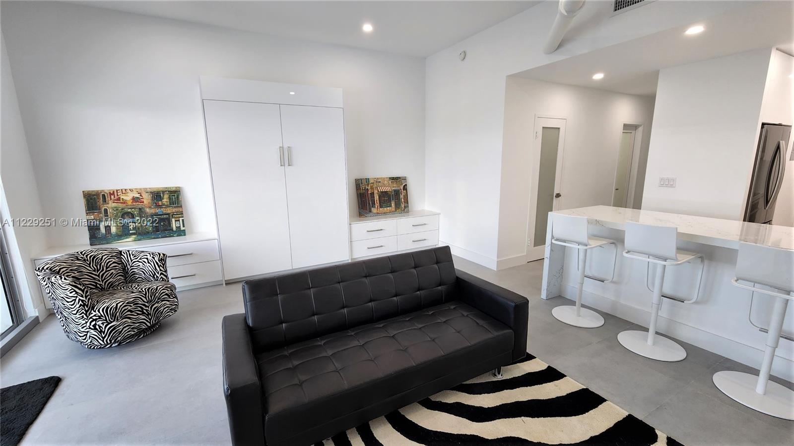 Spectacular renovation! Only on the PH level is it possible to elevate the ceiling to a soaring height of 10'! This industrial-chic studio will make the perfect pied-a-tierre, seasonal home or full-time residence. The open kitchen offers gleaming cabinets to the ceiling and a gorgeous quartz waterfall counter. Porcelain floors throughout with the look of concrete. Beautiful new bathroom. New electrical panel. Hurricane impact doors lead to the balcony with views of Biscayne Bay. Full size Bosch WD in the walk-in closet. Built in Murphy bed. Cable/Internet provided by the bldg. Amenities include a lg fitness center overlooking the Bay, convenience store, community room, valet, BBQ area, pool, spa and bike storage. One of a kind unit in a great building!