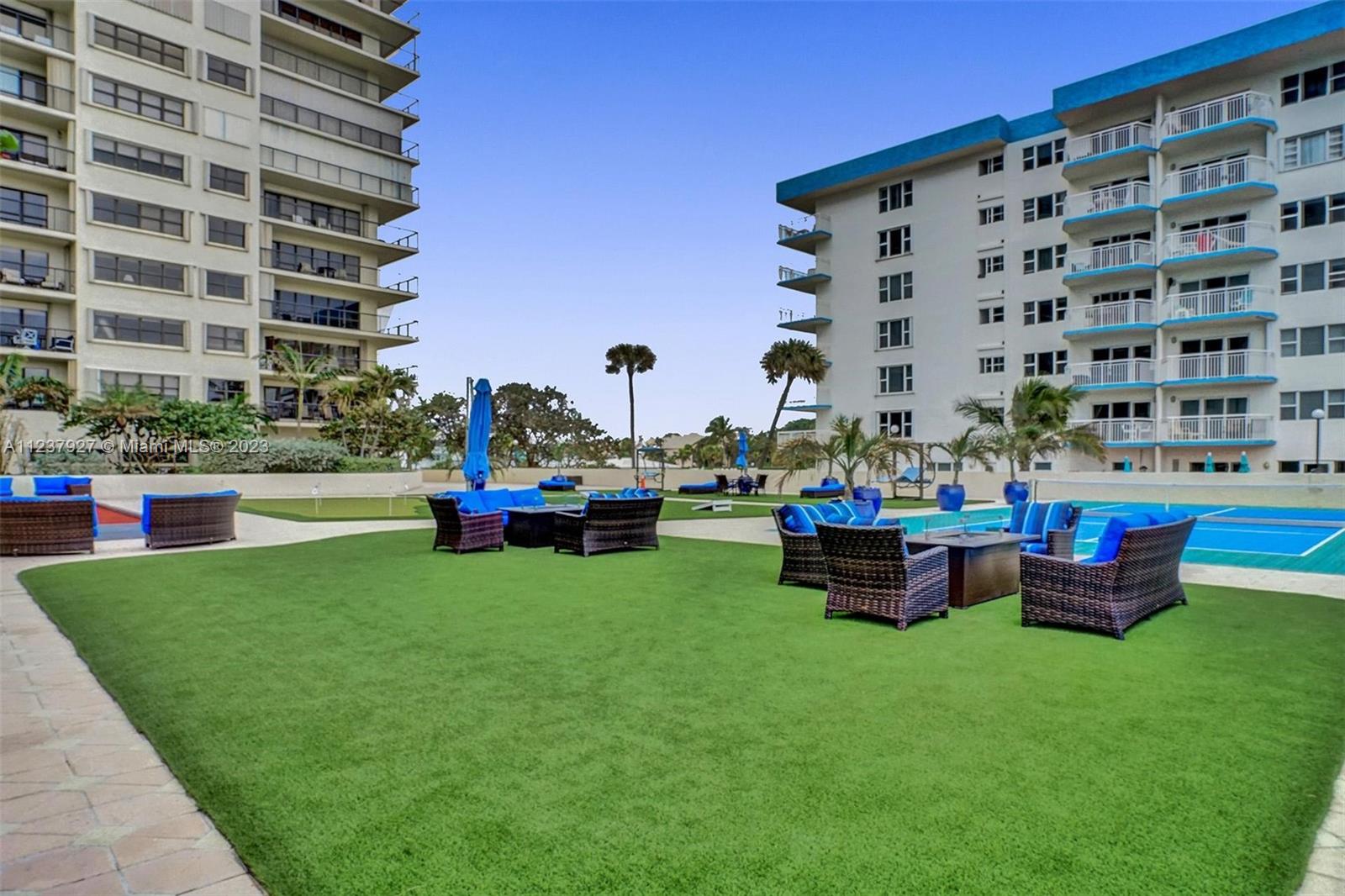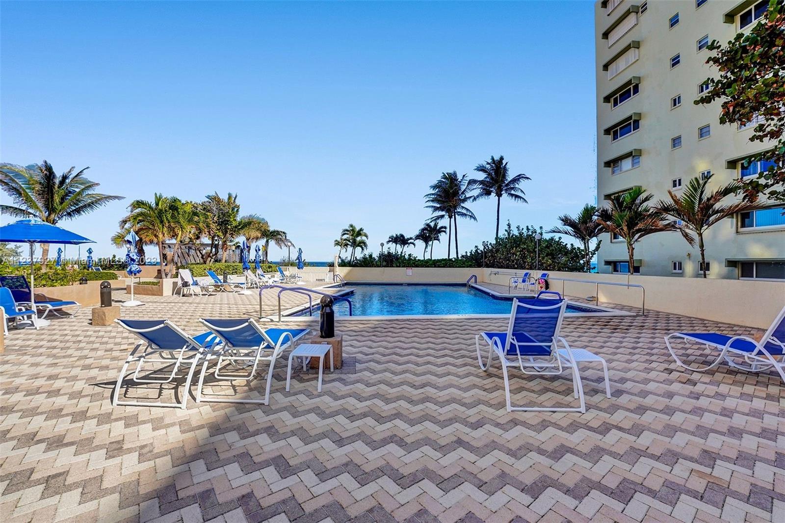 Step out to the beach directly from your home.....no stairs or elevator needed. Enjoy the easy living from this first floor, 1726 sf corner unit. The large patio offers a wonderful place to enjoy outdoor living at it's best. Double entry doors, foyer, second bedroom/den with murphy bed, renovated master bath with steam shower/electronic temperature controls. Great amenities include oceanfront heated pool, BBQ, tennis, bocci and pickleball courts, sofas with fire pits, gym, saunas, 24/7 security and more. Nestled in Lauderdale-by-the-Sea between 2 piers and plenty of restaurants and shopping. Small pet welcome. Okay to lease immediately, twice a year, four month minimum.
