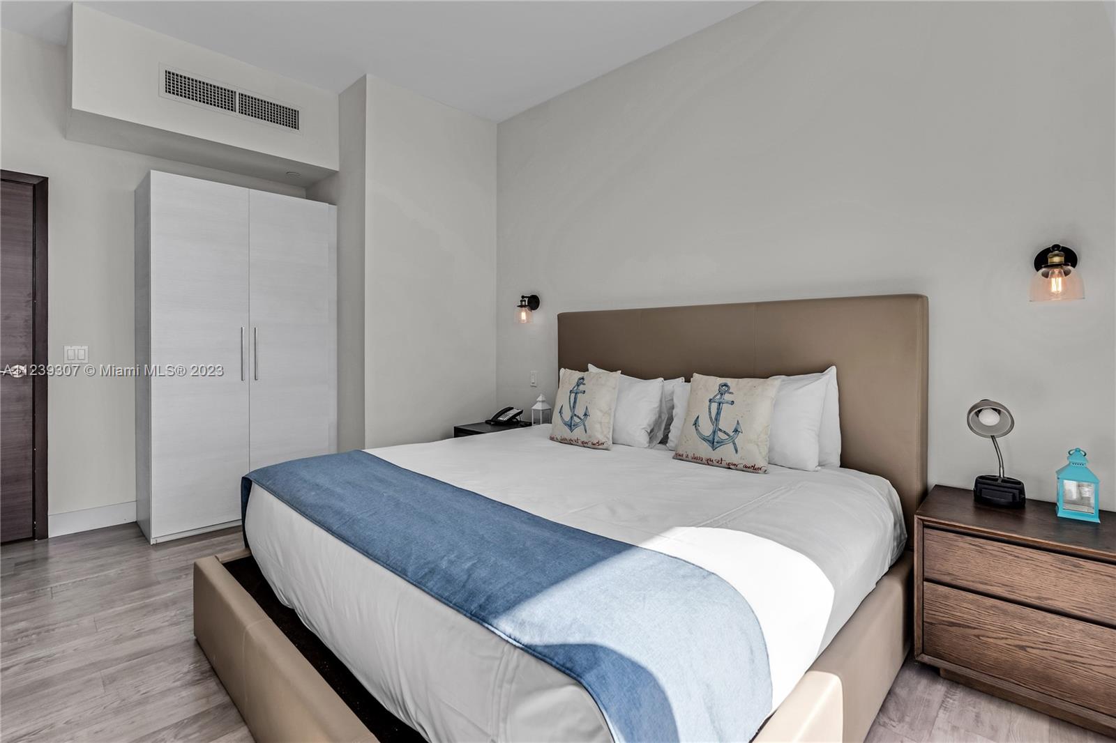 This 2-bedroom, 1-bath modern and fully furnished condo features stunning ocean views and premium finishes, such as Italian cabinetry. The building offers daily, monthly, and yearly rental opportunities with resort-style check-in for guests. It has a rooftop lounge and infinity pool with sun deck, full-service bar, and music. Other amenities include 24-hour valet and concierge service, a coffee shop, gelato creamery, and an upcoming bistro for dining. The location is excellent, just off the Hollywood Beach & Boardwalk and close to acclaimed restaurants and the Hollywood International Airport.