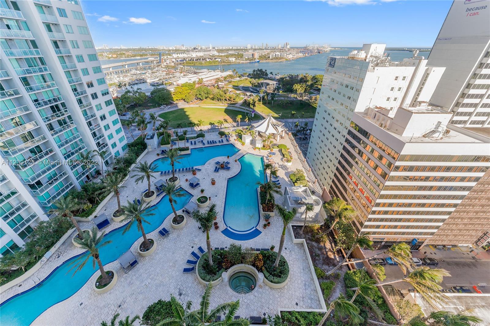 Luxurious resort style condominium. One bedroom unit on high floor with spectacular views of Biscayne Bay. Kitchen is fully equipped with stainless steel appliances, European cabinetry and granite countertops. Bathroom features separate spa tub & glass enclosed shower. Large balcony accessible from the bedroom and living area. Building features, four pools, spa, jacuzzi, sauna, steam room, fitness center, business center, & 24/7 concierge. Near Museums, Arsht Center for the Performing Arts, Arena, Restaurants, Parks and more. Building allows short term rentals.