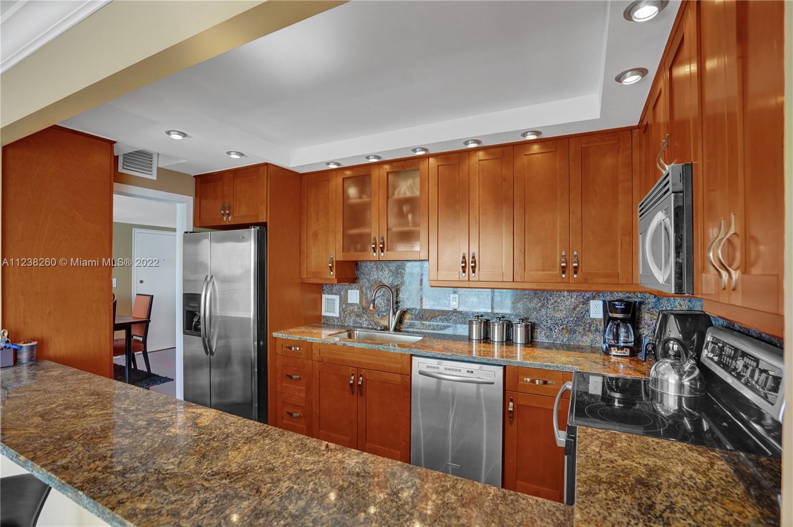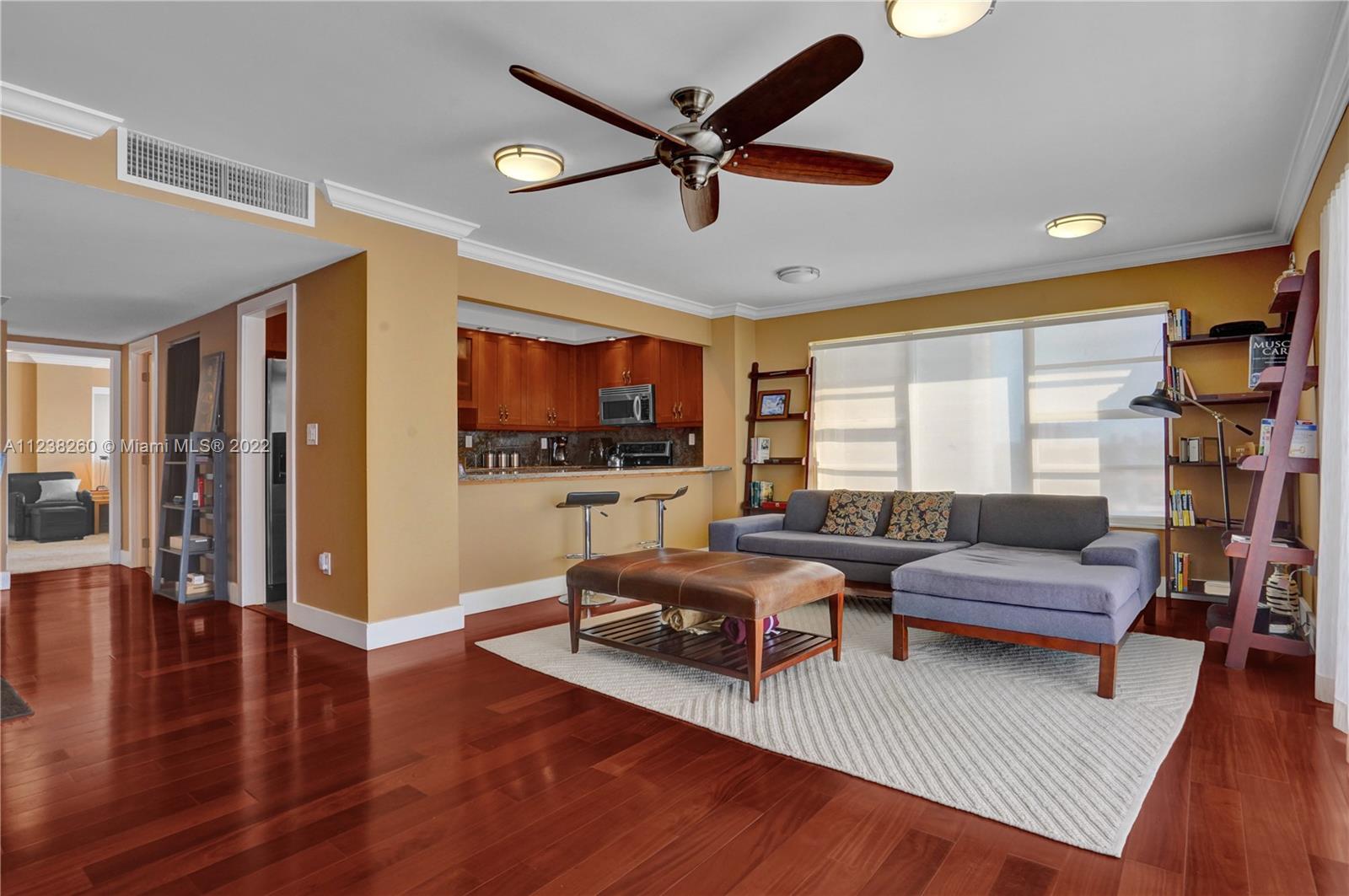 You'll be mesmerized by the incredible panoramic water views over Biscayne Bay from this tastefully remodeled 2 bedroom condo in the gated Jockey Club community. This unit is located in the ideal stack line on the point so close to the shimmering bay waters you feel like you can touch them. Open floor plan concept with an upgraded kitchen boasting solid wood cabinets and granite counter tops. Both bathrooms have been elegantly updated as well. Wood floors in living areas. Smooth, slick ceilings, custom light fixtures and crown moldings really add a designer's touch. Large walk-in closet. Accordion hurricane shutters. Relax at the pool deck right along the bay. Centrally located - close to shopping, restaurants and more. Must own for 24 months before renting.