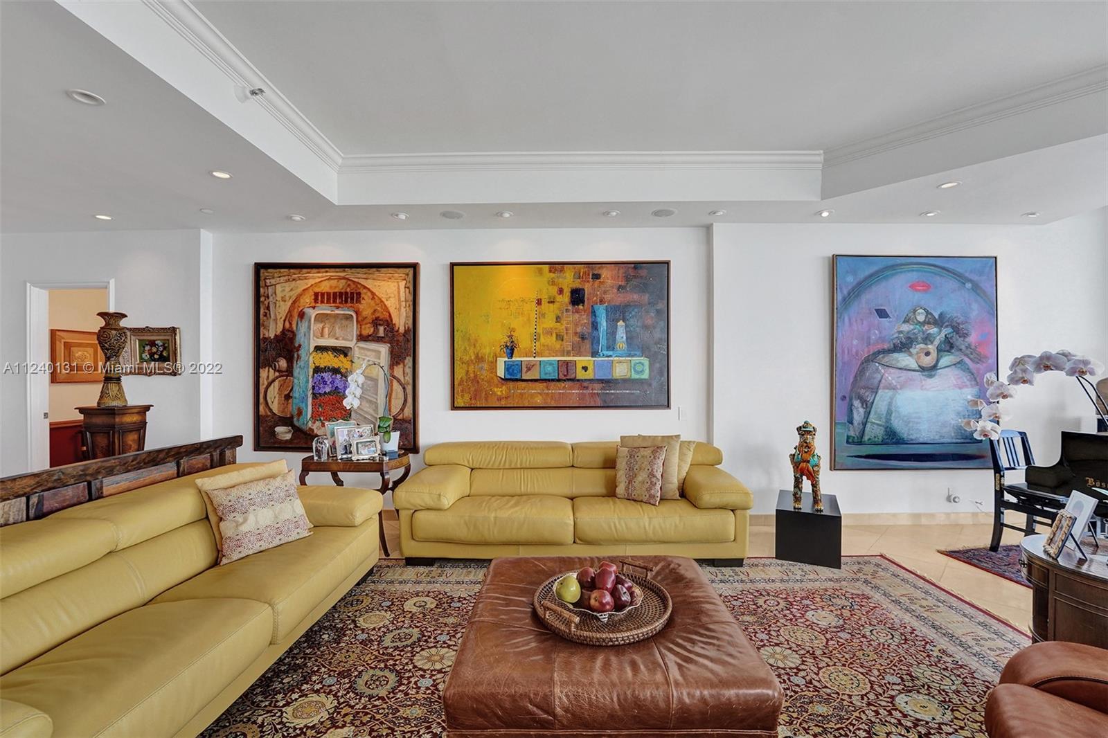 First time on the market! Architecturally designed three bedroom Tower Suite 27th floor BISCAYNE MODEL apartment with soaring 10 foot high ceilings. Atlantic Ocean views galore from every window. Features include HIGH IMPACT WINDOWS, marble floors, Hunter Douglas shades, recessed lights, ceiling mounted speakers, custom closet interiors and upgraded kitchen appliances. Custom mill work can be found throughout apartment. Third bedroom custom designed as a library with beautiful mahogany wood floors and coffered ceilings. Second bedroom includes custom built closets. Additional walk in closet in Master area. Enjoy side by side full sized parking spaces in garage. One Island Place is a full service luxury building situated on 8 acres in the heart of Aventura.
