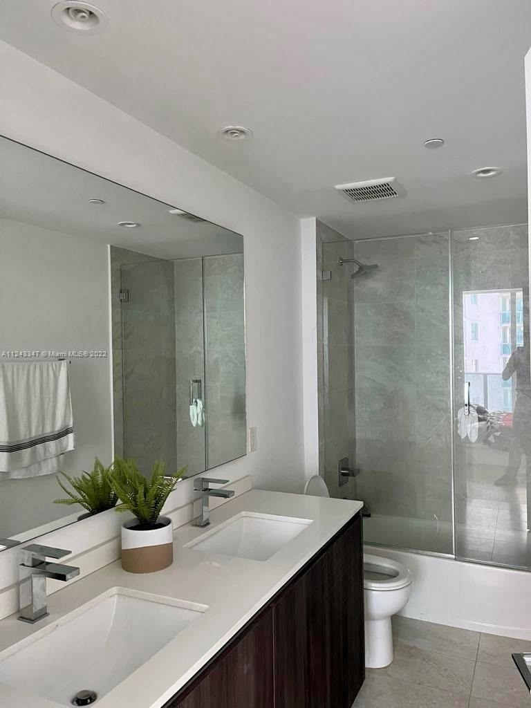 Breathtaking ARIA ON THE BAY unit with beautiful bay view. This unit has 2BED/2.5BATHS, quartz kitchen countertops, BOSCH stainless steel appliances and marble floors. Enjoy luxury living in this brand new building with five star amenities; BBQ area, spa, sauna, steam room, fitness center, yoga room, kids playroom, movie theater, on-site coffee shop, gym, concierge, business center, private lounge/party room and much more! located in Edgewater in the Arts and Entertainment District, walking distance to Publix, wynwood and many exclusive restaurants.