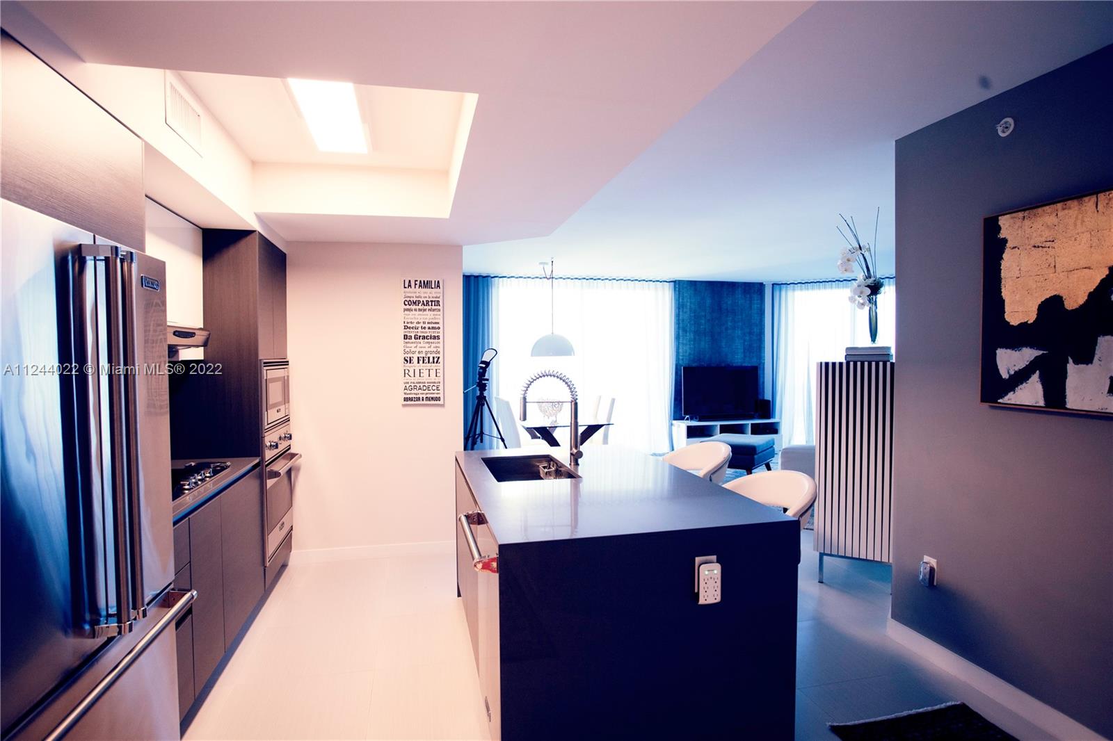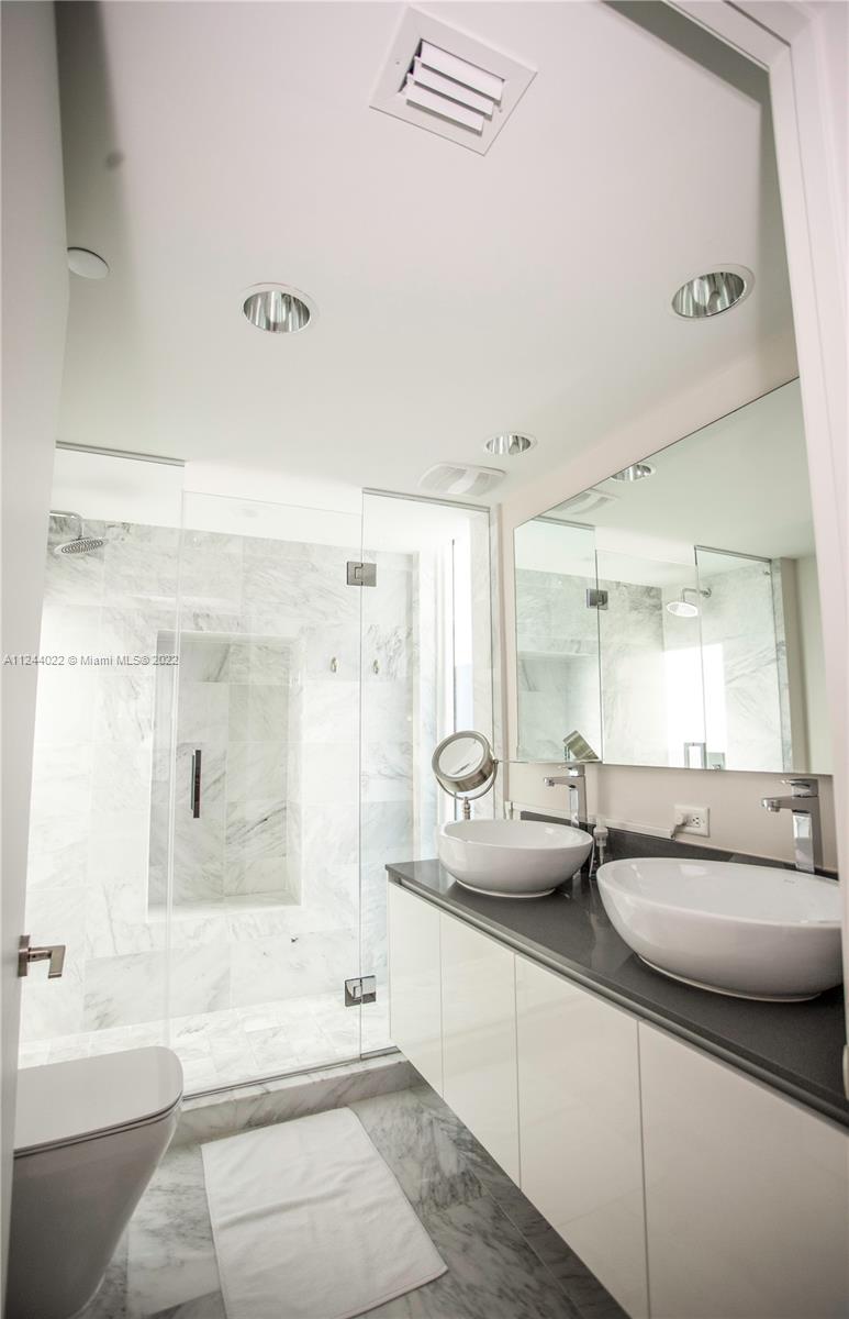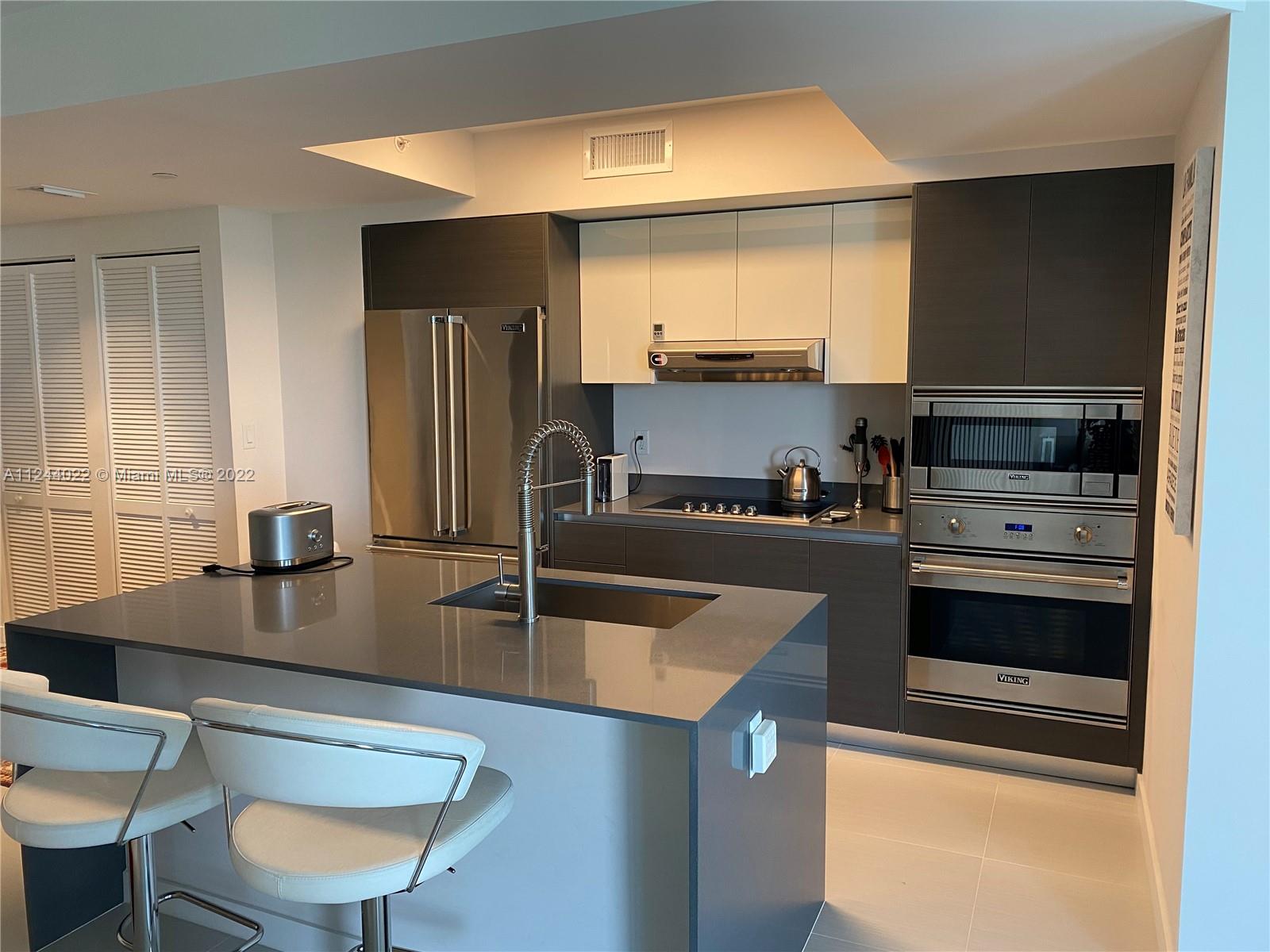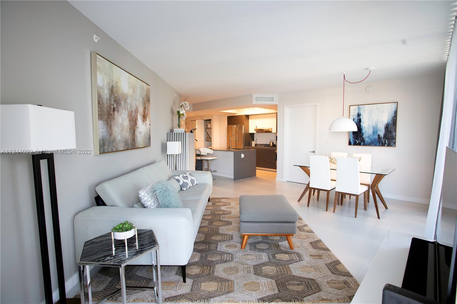 Best priced unit on the island! Fully furnished & equipped condo at luxury boutique building on the intercoastal. Beautiful corner unit with tranquil bay views. The furnishings throughout this unit are high end. Beautiful Italian porcelain floors throughout with marble floors in the bathrooms, updated light fixtures. Floor to ceiling windows and sliding doors, kitchen and bathrooms fitted with European cabinetry and quartz countertops, marble floors in the bathrooms. O Residences offers many of upscale amenities including barbecue, 2 pools, hot tub, paddle board & kayak storage, community dock, gym and relaxing sauna. 2 assigned parking spaces and storage. Walking distance to Bal Harbour shops, houses of worship and the beach!
