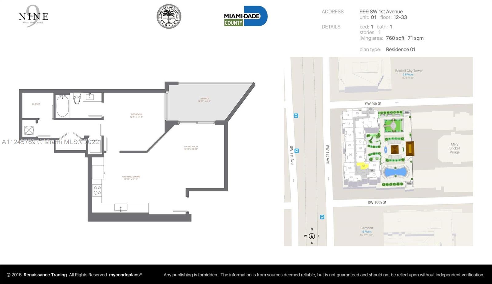Large 1/1 with large walk-in closet, bathroom with shower & tub. Bedroom currently has a king-size bed with plenty of room for working space as well. Stainless-steel appliances including dishwasher, range, microwave, quartz countertop. Full size washer & dryer in unit. Large size balcony. Amenities (with wi-fi service throughout): 24-hour doorman, resort style pool with cabanas, BBQ grills, recently renovated fitness center, business center/library, wonderful playroom and outdoor playground, one acre amenity deck with Zen garden, game room, lounge for parties. This is the best location with many restaurants and shops within walking distance Conveniently located across the street from the Metrorail Brickell Station (access to Metromover and train) and next to a Publix for easy shopping