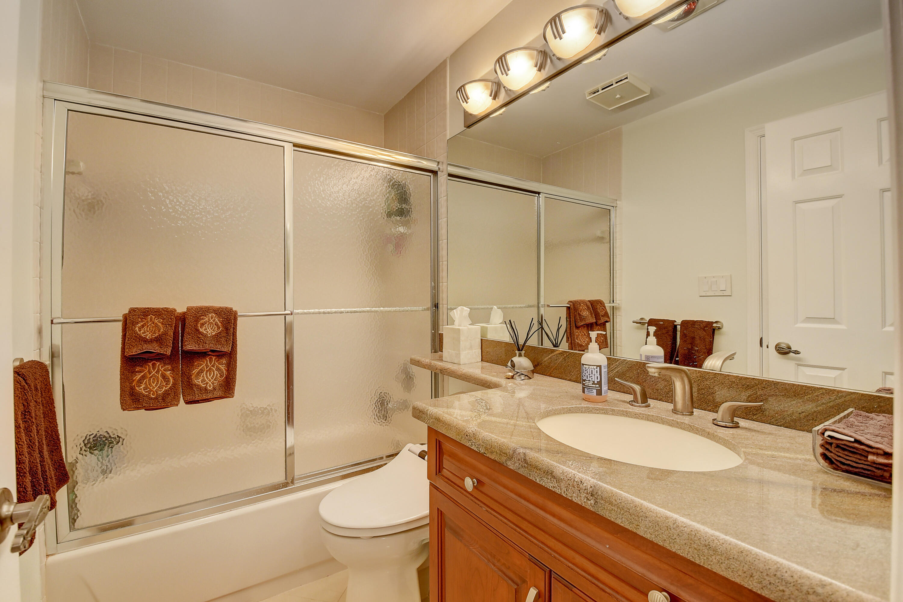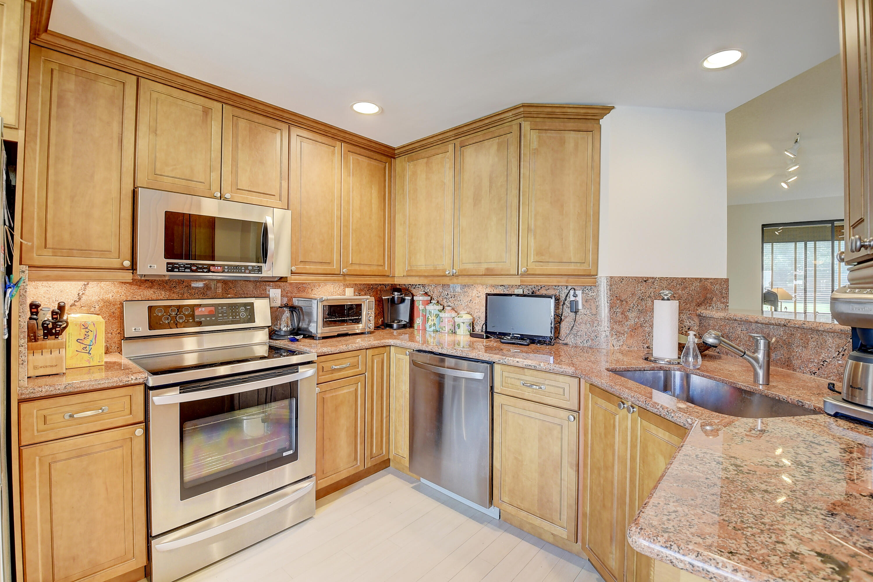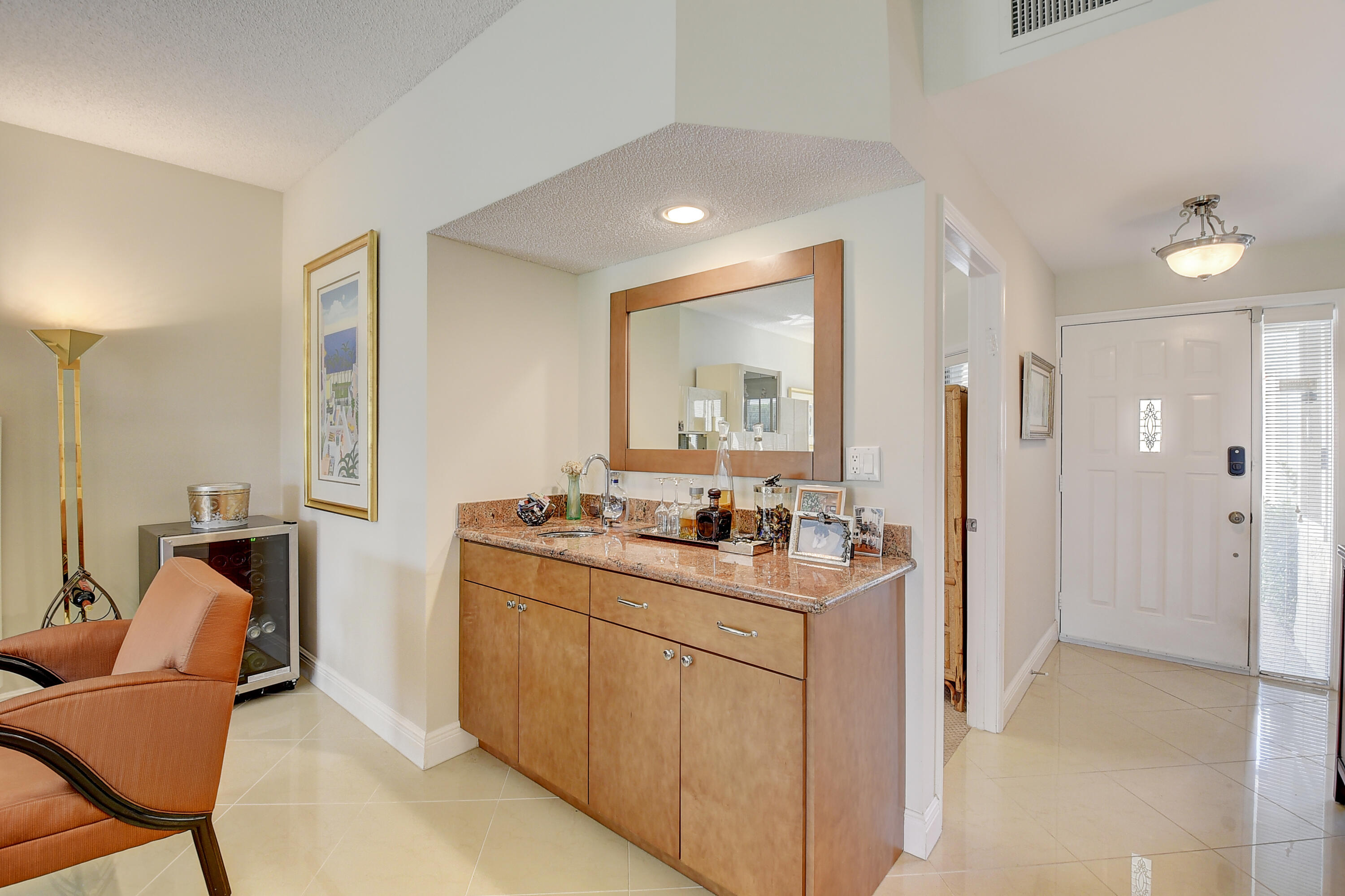 SEIZE THE OPPORTUNITY ! DRAMATIC PRICE REDUCTION ! THIS HAS IT ALL ! UPGRADES GALORE ! NEW ROOF ! JUST MAKE AN OFFER !1st floor. Large porcelain tile (on diagonal) Redesigned custom kitchen w/ ss appliances & granite counters. Unique custom wet bar. 3 true bedrooms + Florida room/den. 2 bedrooms w/ en suite baths. Custom closets. Seller to give carpet replacement credit w/acceptable offer. Both bathrooms remodeled , & 'Smart' toilet in 2nd bathroom. Direct golf view. Newer roof ! Covered reserved parking at your door. Storage closet in courtyard. Steps to beautiful resort style community pool. Club membership NOT MANDATORY, but readily available w/ no equity buy-in. Class A schools, close to shopping, services, houses of worship. 5 miles to the beach. MOTIVATED SELLER