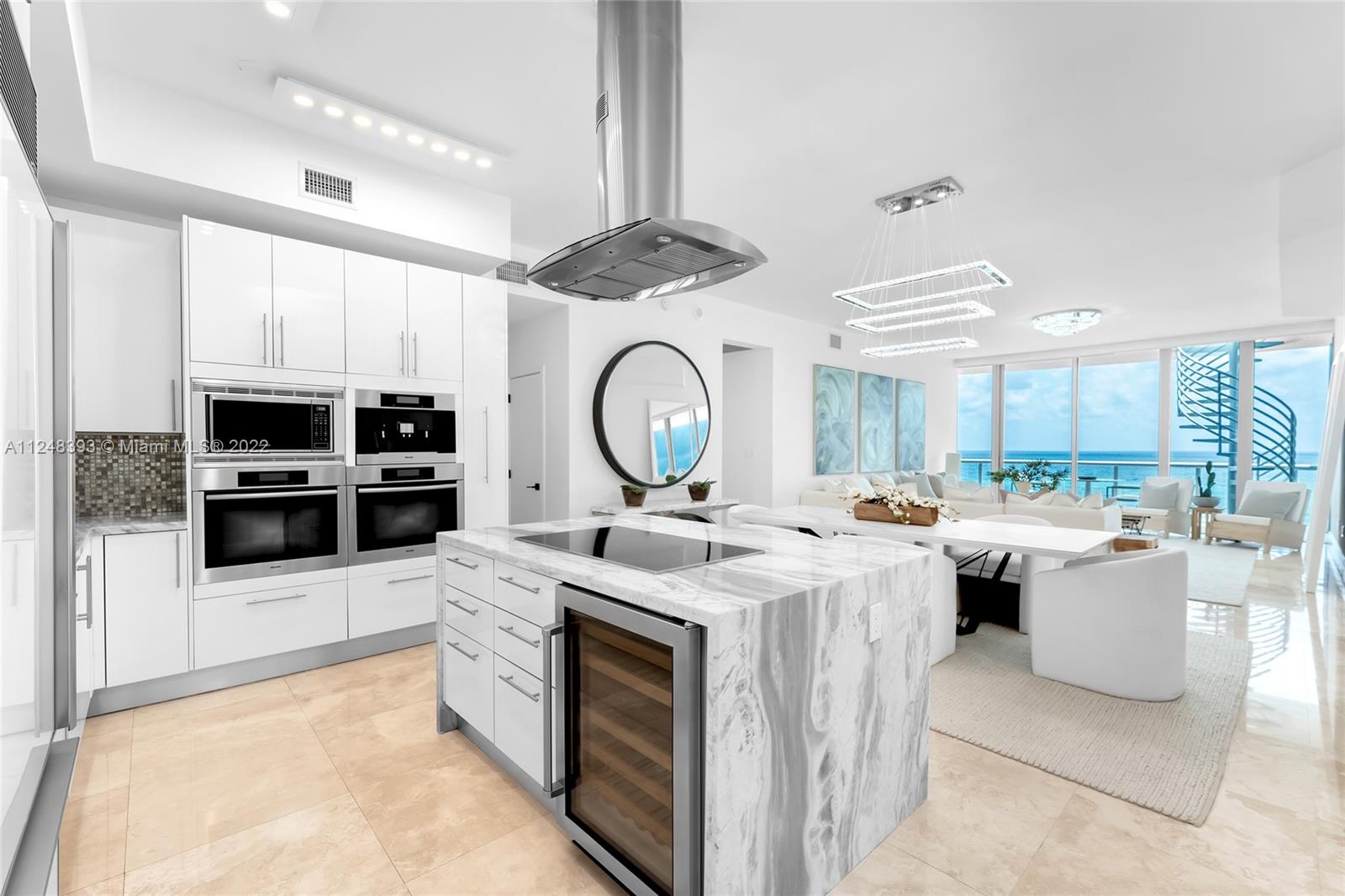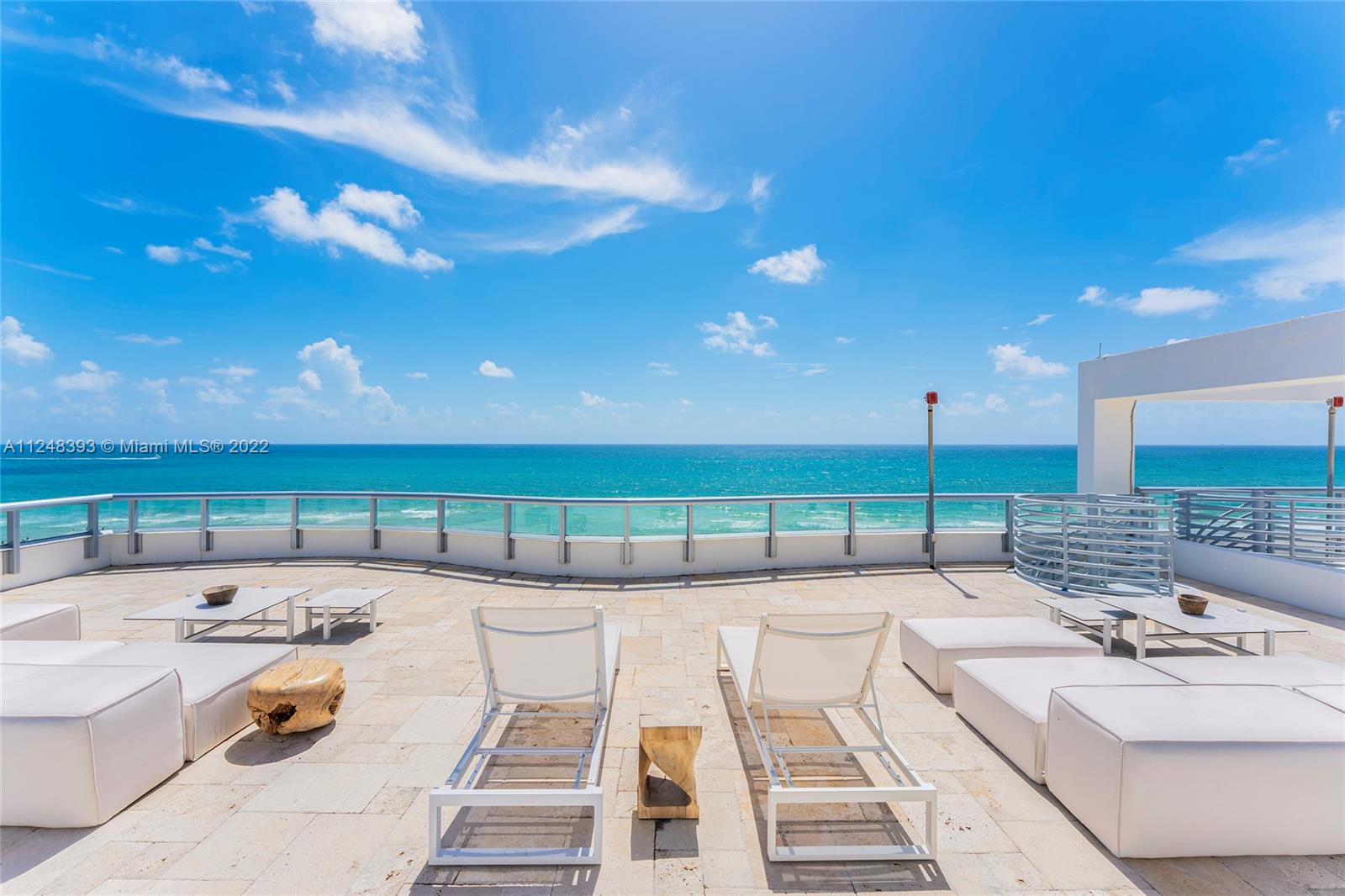 This direct oceanfront Northeast corner penthouse at the Carillon Condo in Miami Beach features a 837 SF wraparound terrace with direct sunrise & ocean views, plus a spiral staircase that leads to an expansive 961 SF rooftop sunning terrace to relax and entertain. 2,165 SF of luxury with 3BR/3+1 BA, marble floors, open flowing living & dining room area w/direct terrace access, sleek chef’s kitchen w/top-of-the-line Miele appliances & ocean views from every room. Large oceanfront principal suite w/floor to ceiling windows, & stunning principal bath w/glass shower and soaking tub. The other 2 bedrooms are each spacious w/en-suite baths. Carillon amenities include: 24-hour security, valet parking, 4 pools, full gym, full-service spa, steam, sauna, restaurant, bar, beach services & much more.