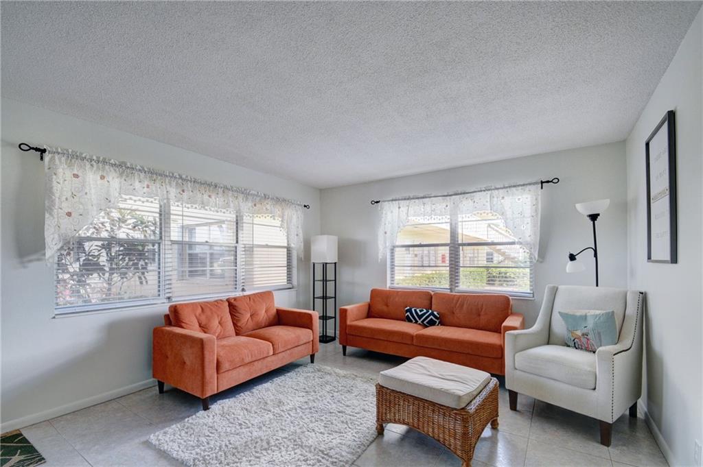 Welcome to your own little piece of paradise! Century Village West Palm Beach is a 55+ community with endless amenities to enjoy the South Florida lifestyle. This corner unit on the 1st floor is a fully furnished turn key 1 bedroom, 1 and a half bath condo which has been remodeled throughout. It offers a bright open floor plan with an enclosed patio. Upgrades to the unit include: tiled flooring, ceiling fans, remodeled kitchen with new white cabinets, stainless steel appliances, and a new vanity in the bathrooms. The community has 24 hour security and the Club House offers: fitness center, in/outdoor pools, sauna, billiard room, library, card and activity rooms, beauty parlor and barber shop and even a theatre for movies and shows! Perfect for primary resident or seasonal owners.