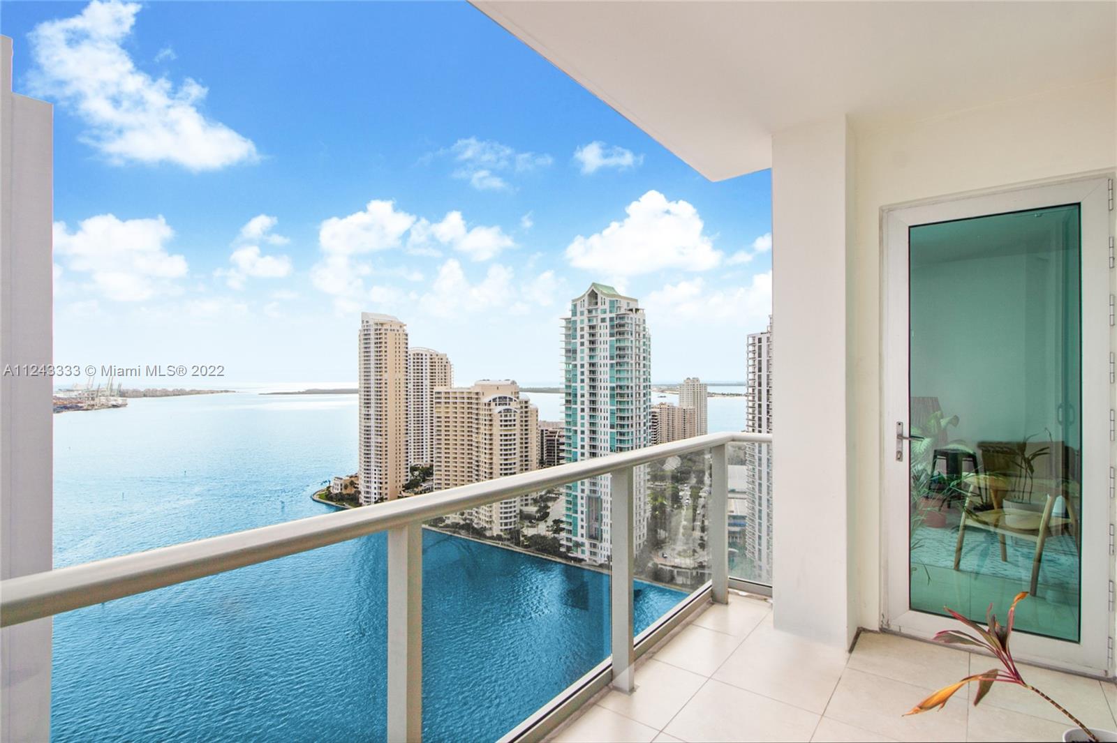 Fabulous water and city views from this spacious 2 Bedroom/2 Bath split plan unit. Tile flooring throughout. Floor to ceiling glass windows. Open kitchen with Italian cabinetry, granite countertops, and stainless steel appliances. 2 assigned parking spaces. Prime Location. Met1 Tower is located in the heart of downtown w/ luxury amenities-fitness center, Pool, Hot Tub & Spa, billiard room, business center, kid’s playroom, 24 hour front desk, valet parking, and restaurant on site. Within walking distance from Whole Foods, Silver Spot Cinema, Metro-mover, Miami Heat Arena, Restaurants, Brickell City Centre and much more. Tenant occupied until August 31, 2022. Photos represent same floor plan, not exact unit.