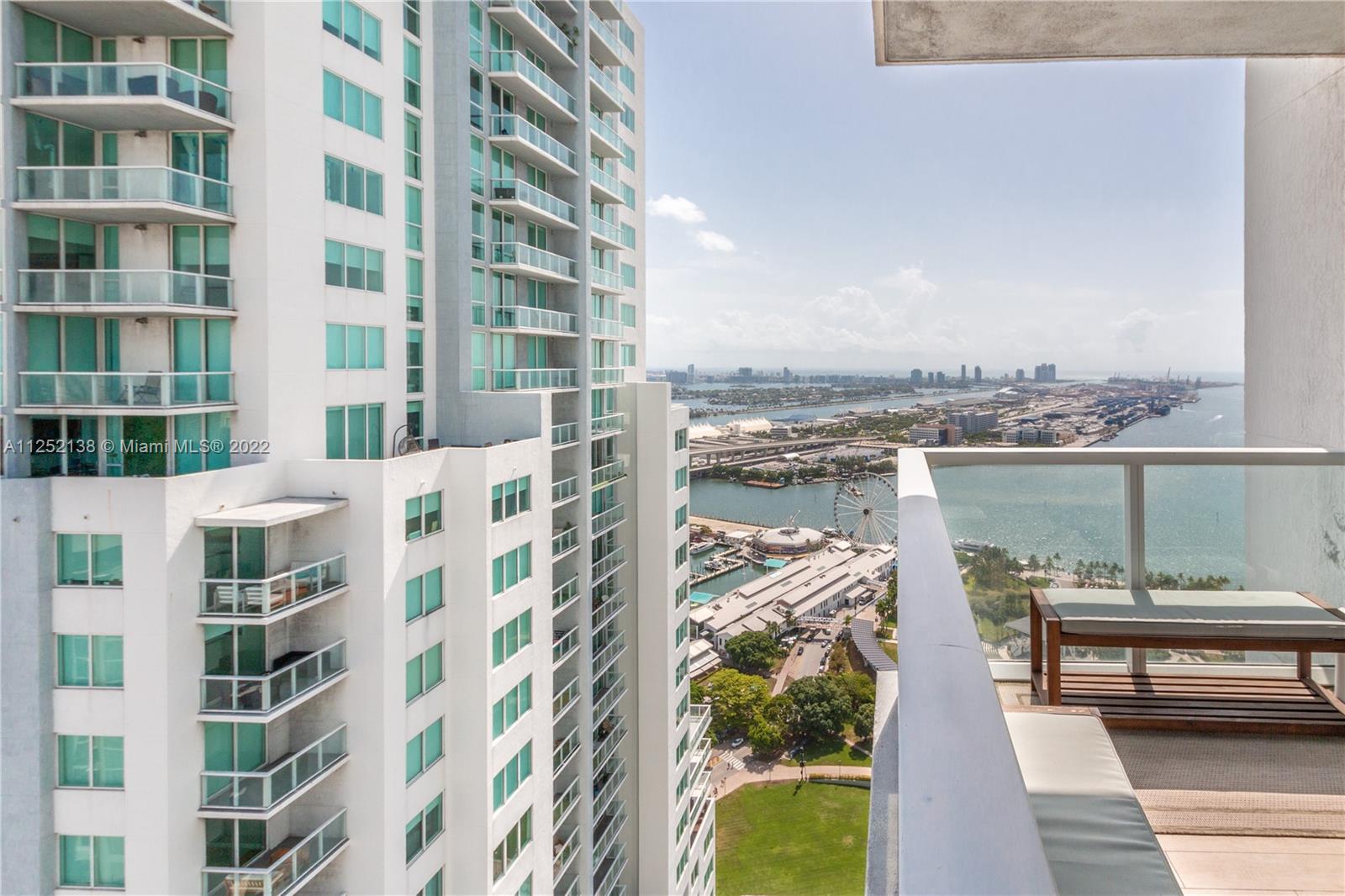 Located at the heart of Downtown Miami, these 3 bedrooms, 3 full baths unit boasts an amazing 180-degree panoramic views of Biscayne Bay and City. With floor to ceiling windows, white porcelain tile floor in the entire unit and wood texture tile at the balconies. "2 assigned parking spaces + storage bin". The building has 2-acres of amenities which are situated 100 ft above Biscayne Bay with water views that residents can enjoy while relaxing poolside. Enjoy a 4-story, 35,000 sf clubhouse offering a full-service spa, health & fitness center, movie-theater, game room, lounge and more. Live steps from PAMM, Arsht Center, and Miami Heat. Head south and you’re in Brickell; north you’re in Design District and Wynwood; cross the causeway and you’re in South Beach.