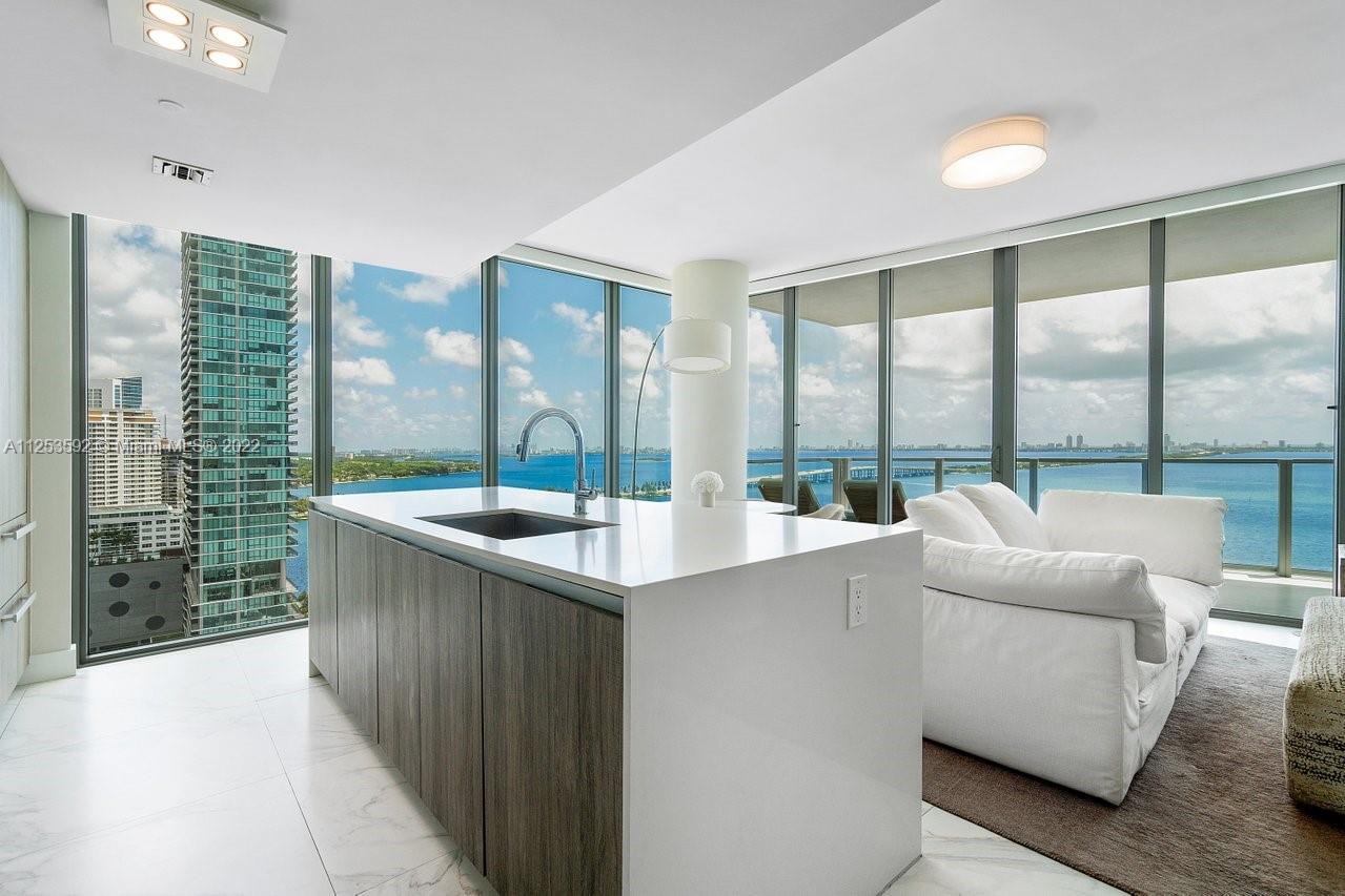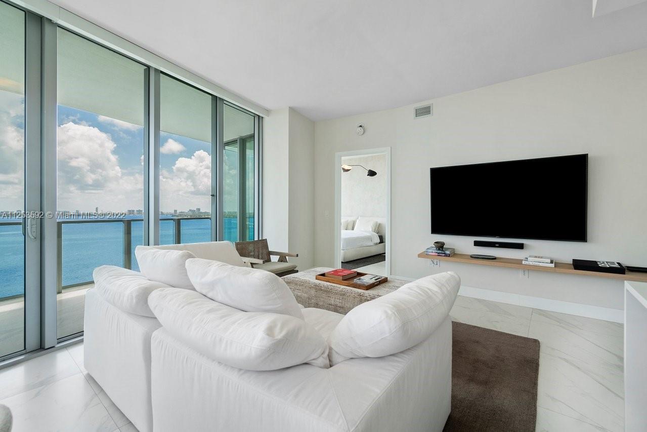 Picturesque, luxury condominium at Biscayne Beach in Miami Beach's highly sought-after Edgewater neighborhood. Offered fully-furnished by Restoration Hardware, the NE corner location on an elevated floor offers stunning direct bay views. 3 bed, 4 FULL bath, top-of-the-line Miele appliances, marble flooring throughout, and private elevator foyer. Building designed by legendary Tom Filicia, offers a zero-entry pool and lap pool, two tennis courts, half basketball court, beach club with cabanas and beach volleyball area overlooking the bay, towel service, bar, social rooms, fitness room, spa with sauna, steam room, massage rooms and a resident dog park.