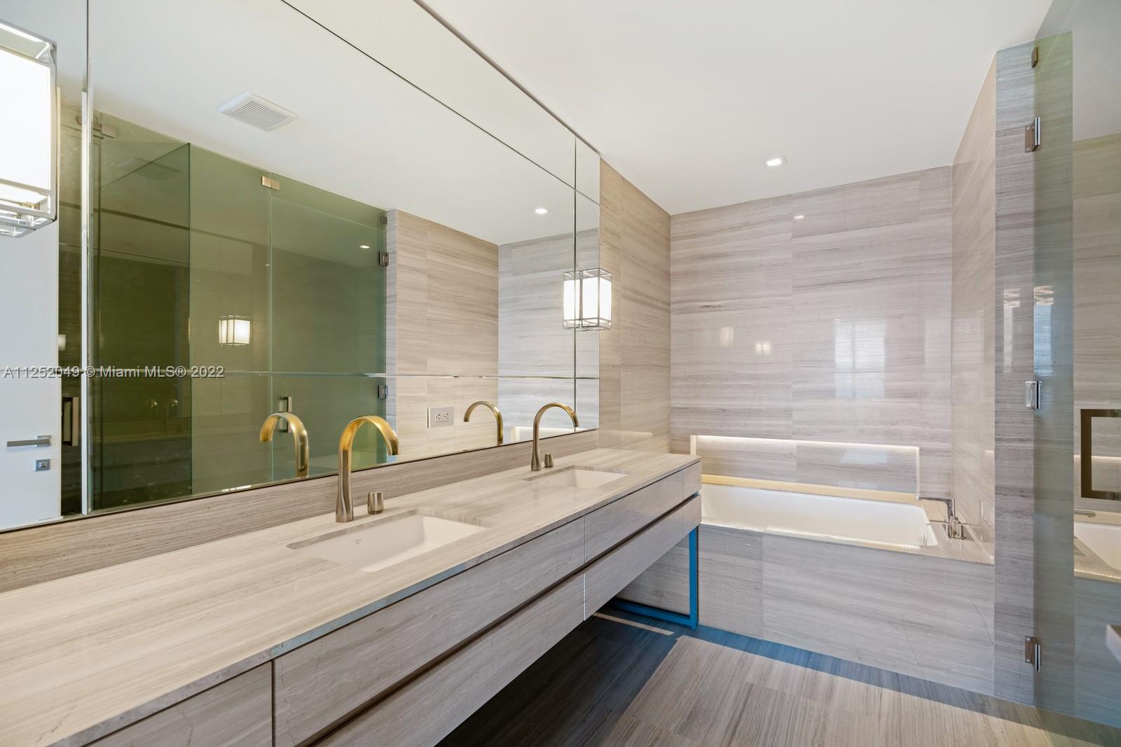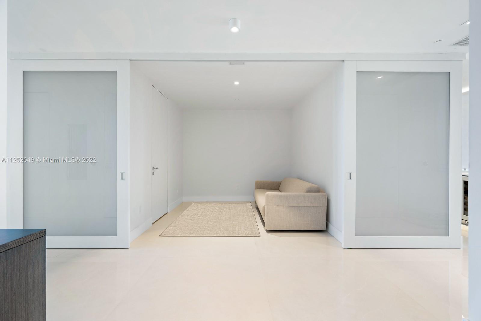 This exquisite home in the sensational Residences by Armani Casa has been fully built-out with extensive upgrades including custom built light fixtures in the living room, wallpaper, and built-out closets all by Artefacto. The three-bedroom, three-and-a-half-bath plus den (or optional fourth bedroom) residence is flow-through, with a private elevator entry and spectacular ocean and Intracoastal Waterway views, a chef’s kitchen with Wolf and Subzero appliances, 10-foot ceilings, 10-foot-deep balconies, a summer kitchen, and a master suite with a midnight kitchen and decadent bath. The building’s spectacular amenities have interiors fully designed by Armani, including a private restaurant for residents, lounge, gym, and spa. Over $400,000 in furnishings by Artefacto may be negotiated.