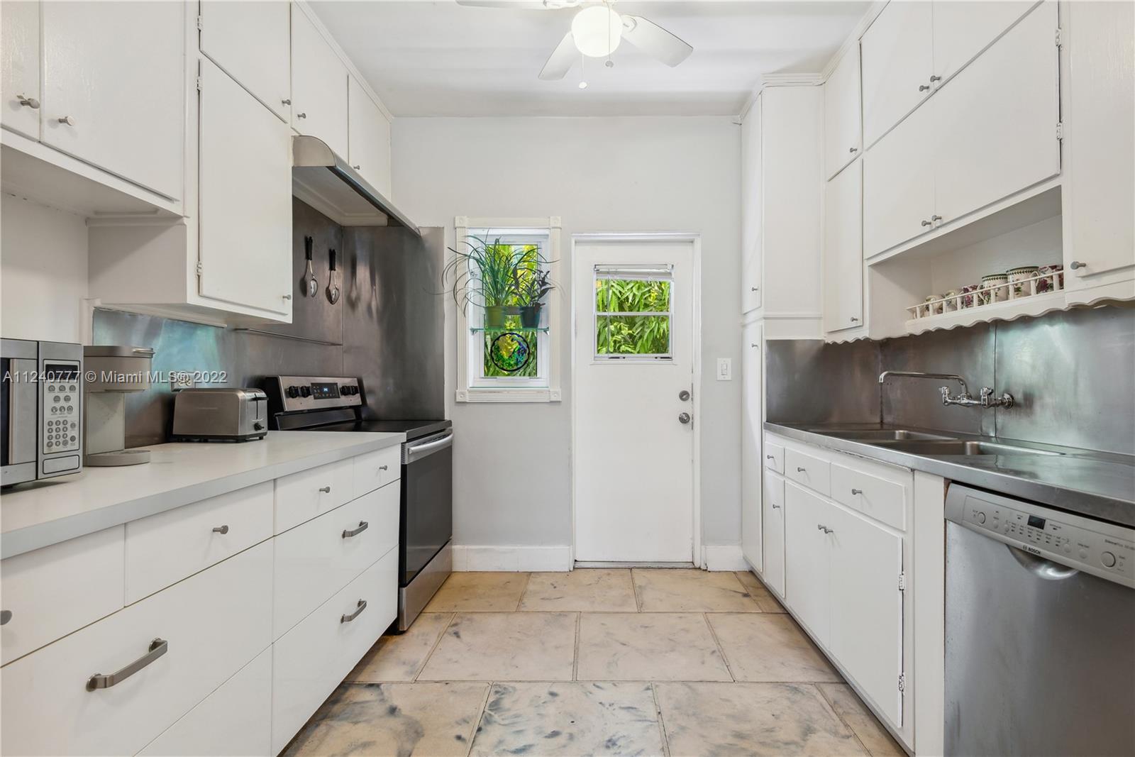 Lush garden apartment in Normandy Isle. Charming 1/1 with impact windows, decorative fireplace, stainless steel backsplash and newer appliances. Beautiful original Cuban tile floors. Peaceful water views from front windows. Assigned gated parking. W/D may be installed in unit. Laundry facility is steps away. New roof, intercom entry and BBQ area. Centrally located to beach, South Beach, Midtown and highways.