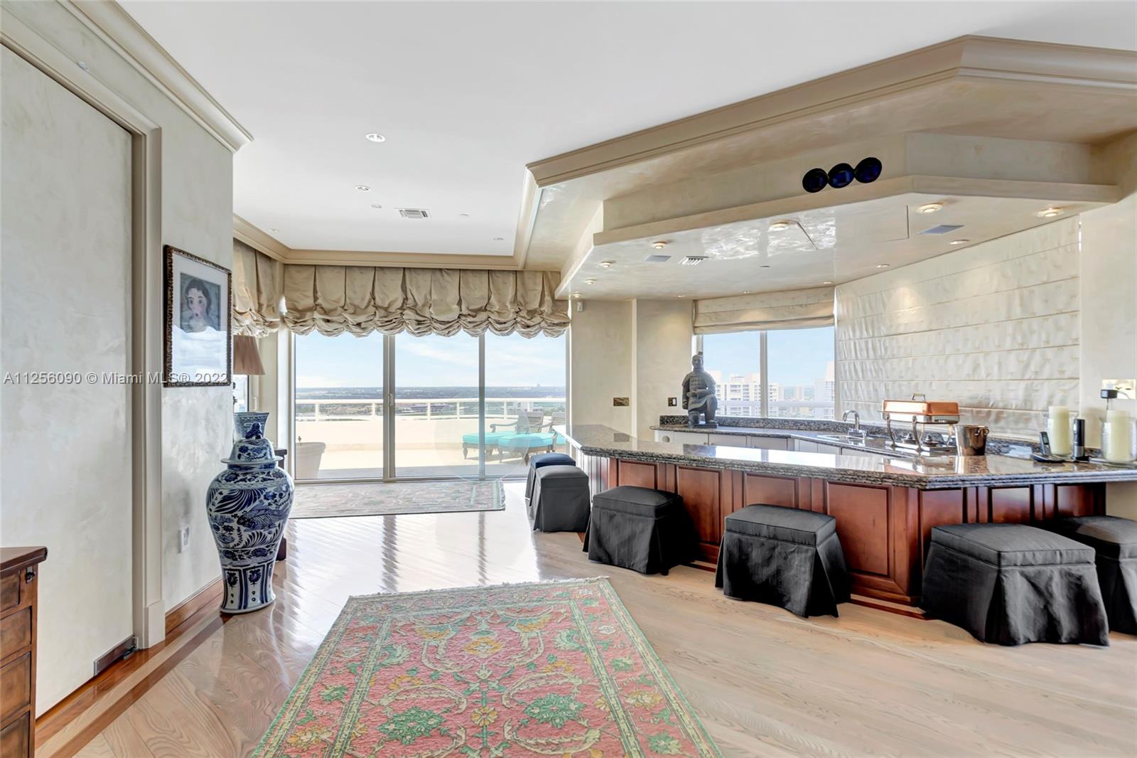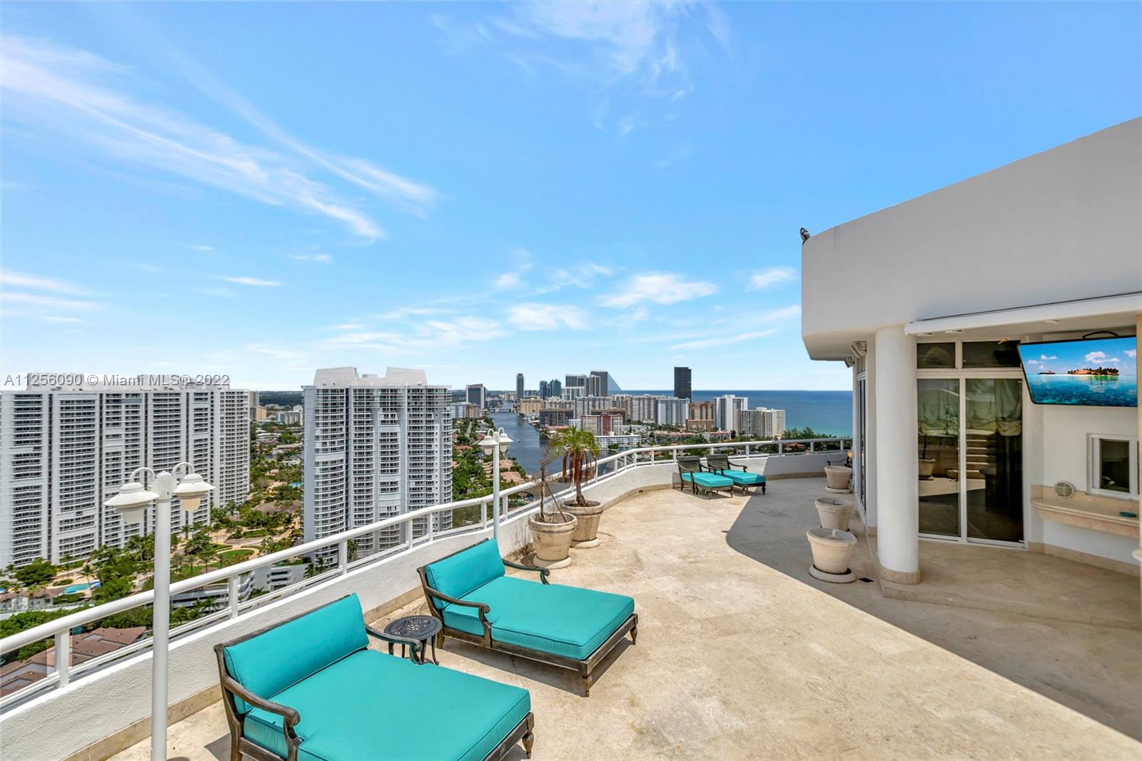 AN EPITOME OF ELEGANCE RIGHT IN THE HEART OF AVENTURA OFFERING THE GRANDEUR OF THE INSIDE, OUTSIDE LIVING. THIS EXQUISITE PENTHOUSE OFFERS: INTRIGUING MARBLE AND GRANITE WORK, ITALIAN, LALIQUE INSPIRED, FROSTED BEDROOM PANELS,WINE CELLAR,PRIVATE ELEVATORS,MAGNIFICENT WOOD STAIRCASE, 2 WET BARS,DUMBWAITER LIFT, TERRACE JACUZZI,AMAZING WALKING CLOSETS WITH ROTATING RACKS, BUILT TO ORGANIZE THE BUYER'S SENSE OF STYLE, 4 PARKING SPACES,TWO MASTER BEDROOMS! A TWO STORY PALATIAL SPACE WITH SO MANY ALLURING FEATURES AND MOST UNIQUE LAYOUTS. FURNITURE AND ARTWORK SOLD SEPARATELY. EXPANSIVE TERRACE OFFERS STRIKING VIEWS OF THE INTRACOASTAL AND THE OCEAN. ASTOUNDING BUILDING FEATURING: TENNIS COURTS, HEATED POOLS, STATE OF THE ART FITNESS ROOM, JACUZZI. JUST A TASTEFUL RICHNESS OF DESIGN AND CLASS!