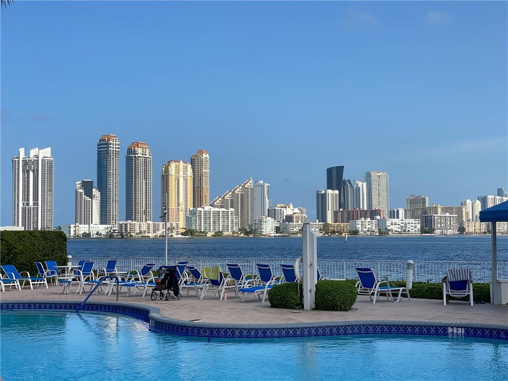 STRIKING WATER VIEWS of Bay & Ocean/ high-rises when you walk in and from every room! Spacious balcony w/access to LR/ BDRM, W/Dryer in unit, split floor plan, walk-in closet, dual sinks, tub & shower, Updated tile in living/dining/hall/bath/kitchen, stone counter tops, SSAppliances. 8 tennis courts, walking paths, resort style heated pool on point lot overlooking water, fitness center, sauna, marina. Steps to mini market, locksmith, salon, dry cleaner & more. Building offers: community/movie/card/library rooms, fitness center, 24hr manned gate, concierge, valet, charging stations, recently renovated lobby & common areas, pet friendly, extra storage, bike storage. Maintenance includes cable/internet. Free shuttle, Near Beach, Aventura Mall, Accepting BackUP Offers