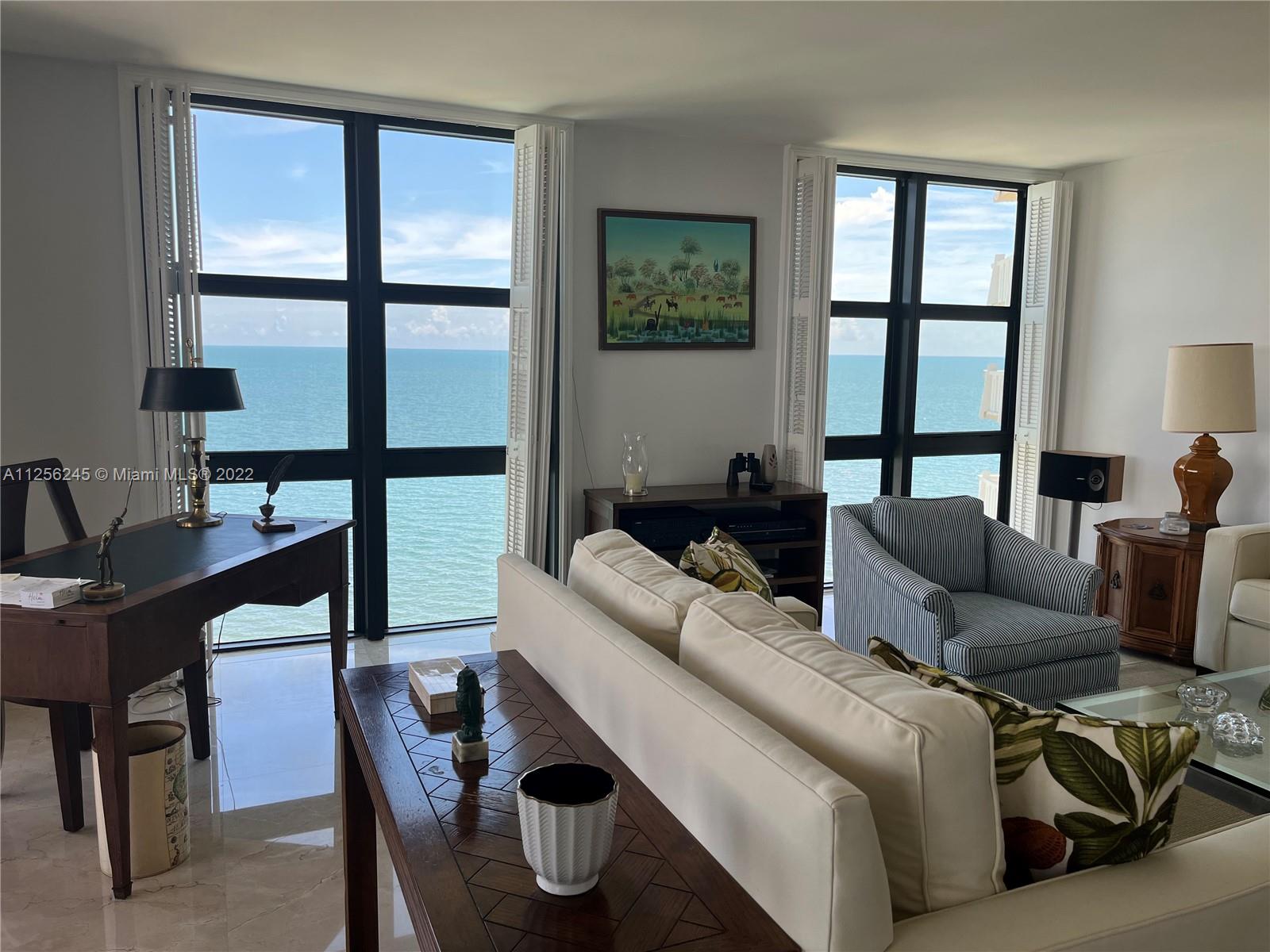 Very spacious 2/2 corner unit with amazing Ocean views, just steps to the pools and beach. Two upper garage parking spaces.New impact windows. Condominium has resort like facilities: 2 pools, 3 gyms, beach service, playroom, restaurant, tennis courts, 24 hours security among others. Easy to show!