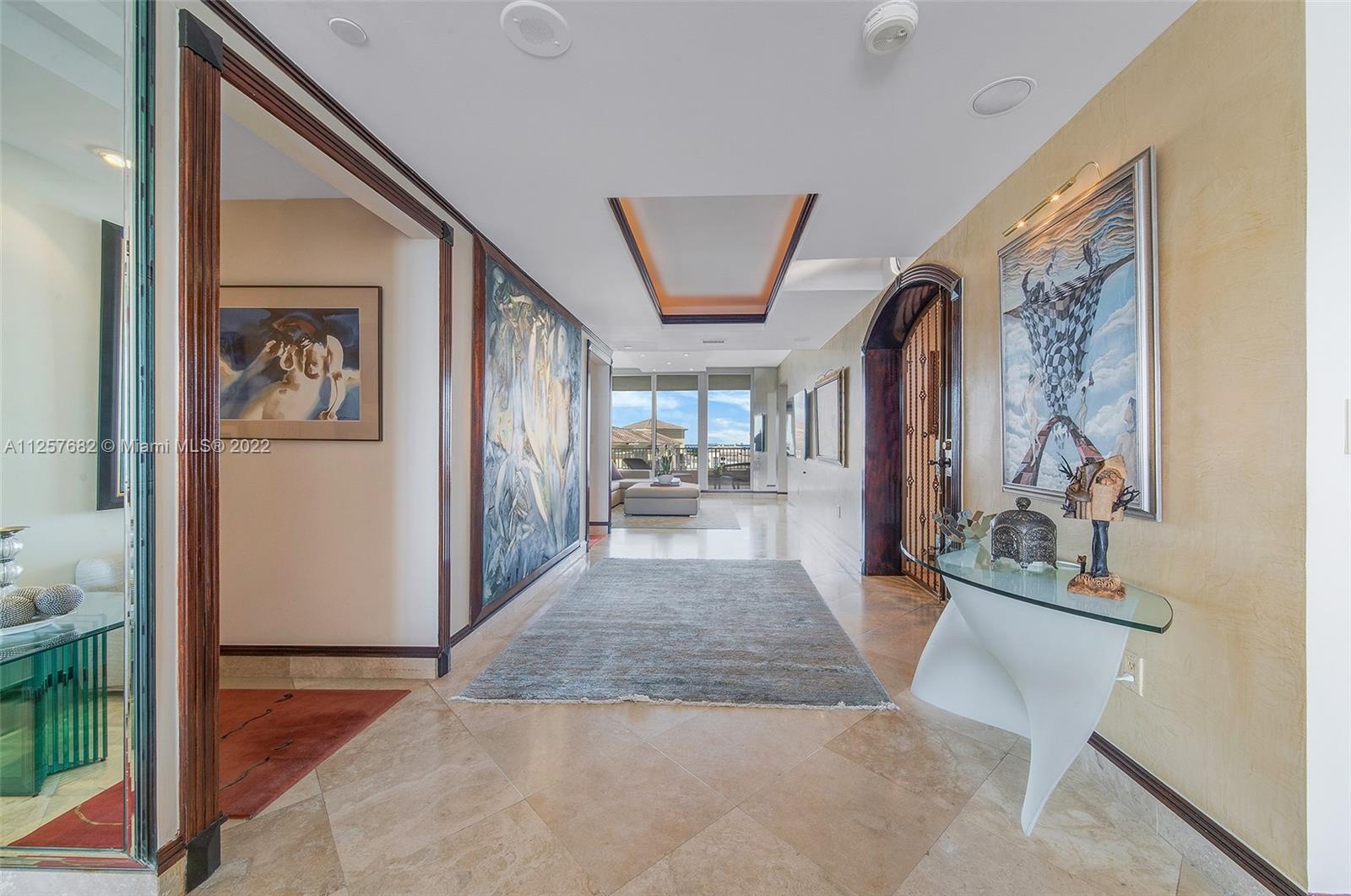 Spectacular Corner unit with stunning Ocean/Beach and Downtown Miami Skyline Views. This spacious apartment offers 3 in-suite bedrooms PLUS staff quarters with full bathroom, Plus a den/office that can be used as 4th bedroom, his and hers master bathrooms plus podwer room totaling 5.5 bathrooms. The East/West exposure offers bright light throughout the day and afternoon, two large terraces with beautiful views, travertine marble floors in living areas and hardwood floors in bedrooms. Resort style living at prestigious Ocean Club, private club, 2 restaurants, private spa, gym, tennis courts, swimming pools and mcuh more. Two car garage, plus valet, storage, pet friendly building.