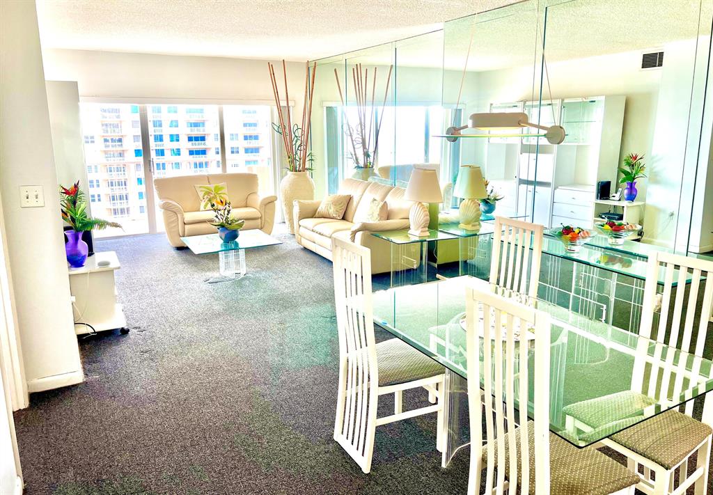 Welcome home to this very well kept condo with direct ocean views in the lovely community of The Hemispheres.Enjoy the ocean breeze and take in the beautiful views of the ocean and the intracoastal waterway from your private balcony.This unit comes furnished with views of the Atlantic Ocean from every window and door. The unit has a spacious master bedroom and living room that is open to the dining room. The kitchen has ample storage with nice cabinetry and a stainless steel fridge. This condo has multiple closets including a separate storage closet by the laundry facilities. The Hemispheres offers numerous amenities including: beach service, valet, 2 gyms, 2 pools, tennis, salon, BBQ area, courtesy bus, and so much more...