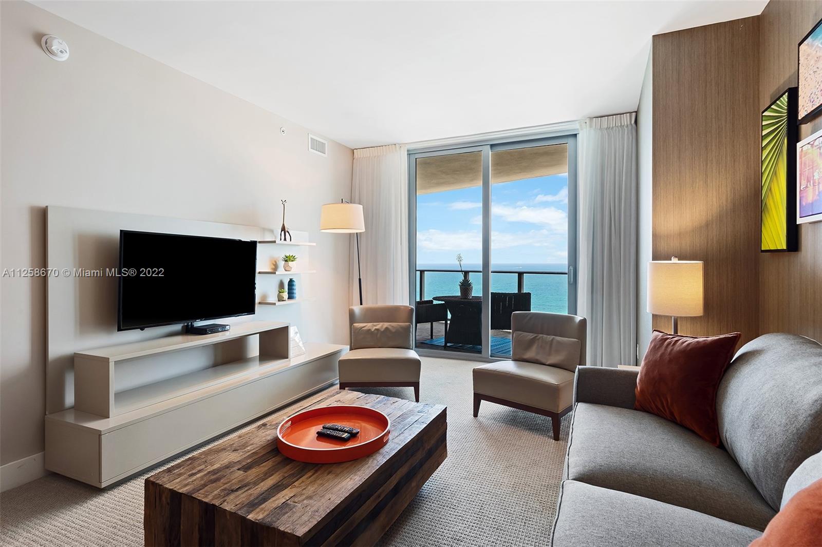 Your reimagined beach retreat awaits at HYDE RESORT & RESIDENCES, set on beautiful Hollywood Beach. This 1 bed/1 bath unit offers a breathtaking ocean views from the 21stfloor including a spacious wrap around balcony and direct beach access. Perfectly decorated in modern seaside style by ARTEFACTO including floor to ceiling glass windows and high end SubZero and Bosch appliances. Carefree living with cable, WiFi, water, sewer, two pools, full service spa, beach service, and parking included. This is a perfect option for a second home, short term rentals or a combination of both. Ideally situated between Miami and Ft. Lauderdale airports, nearby world-renowned Aventura mall, and all the best dining and entertainment south Florida has to offer.
