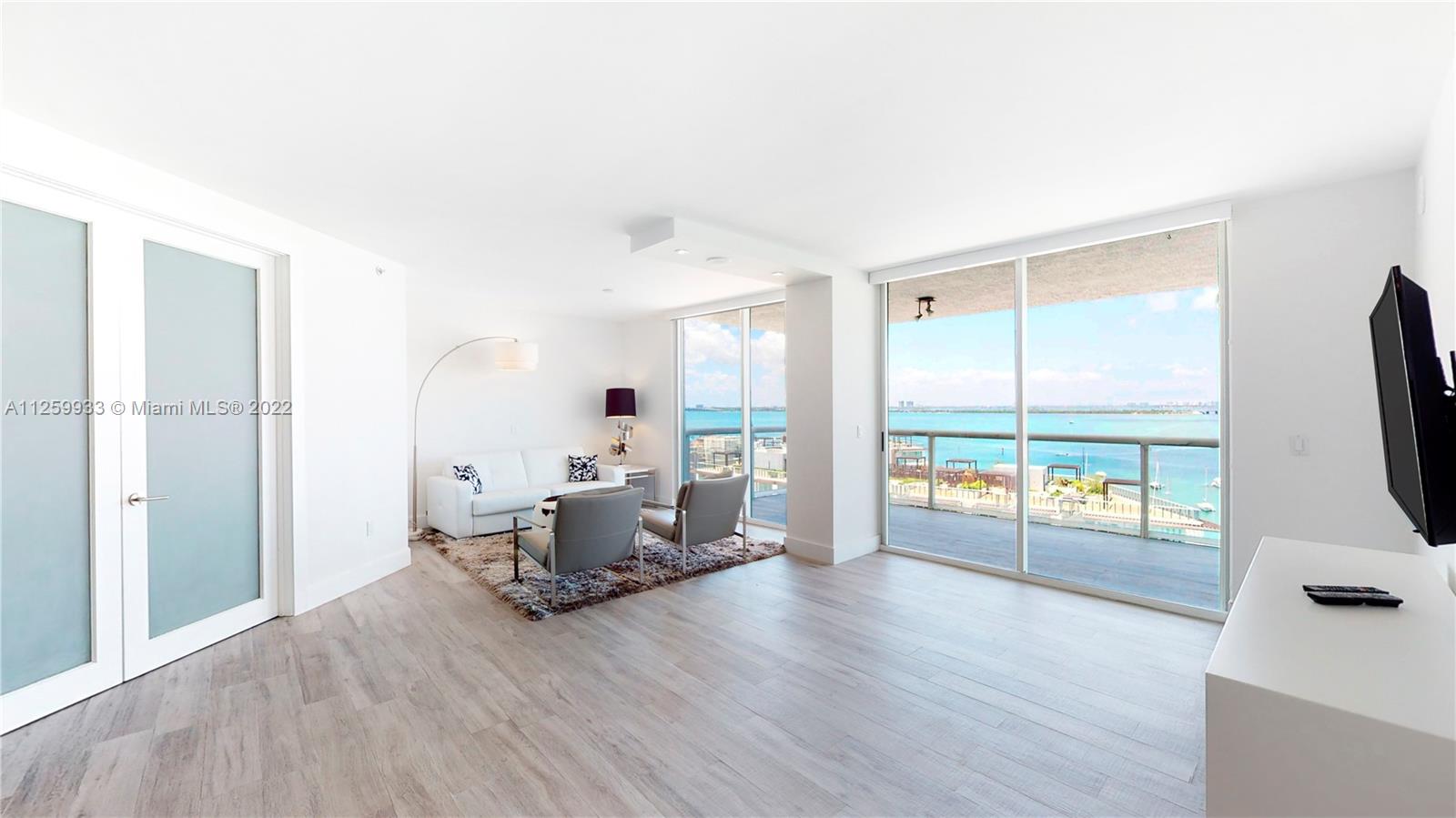 Direct Bay View w/ two large balconies overlooking Biscayne Bay & Belle Isla. This immaculate & updated 2 bedroom / 2 bath features updated modern Bosch SS appliances, washer/dryer & AC. Gorgeous wood floors and built out closets. Walking distance to Sunset Harbour featuring the best in restaurants, cafe's, attached private marina and several top gyms such as Barry's Bootcamp & Sweat 440. All Steps from this doorman building's front desk. The Grand Venetian is one of the best full service, inclusive of 24/7 valet and on-site management condominiums in Miami Beach.