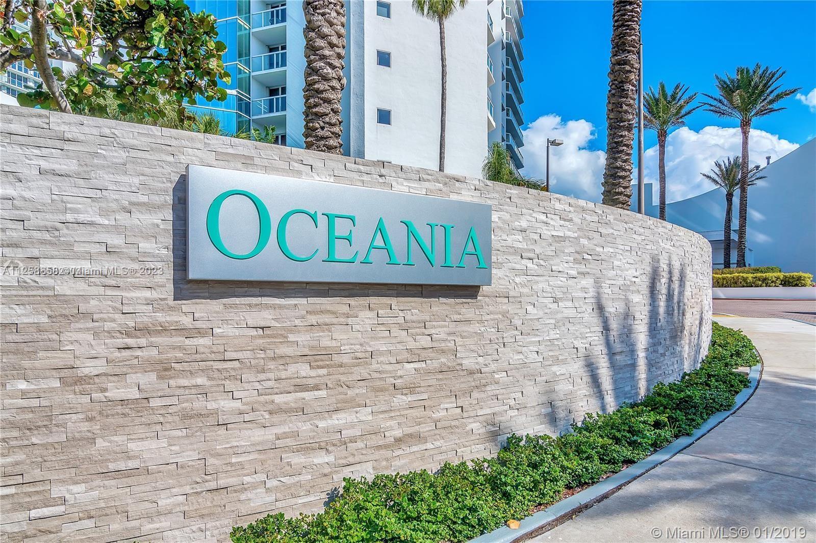 Remarkable opportunity to buy in oceanfront Sunny Isles Beach condominium for investment or personal use. This renovated 2 bedroom/2 bath unit is move-in ready and features floor to ceiling windows for spectacular ocean and city views from 2 separate balconies. Open kitchen with quartz counters, custom cabinetry, chrome and crystal light fixtures, white porcelain tile floors, smooth plaster ceilings. Accordion style room divider transforms your den into a private office or occasional guest room. Oceania has wonderful amenities including full service beach club, health spa with daily classes, tennis, ocean front dining, indoor racquet ball and half court basketball, Marina (Slip currently available) and so much more.
