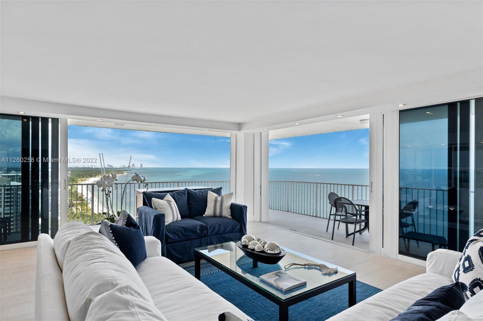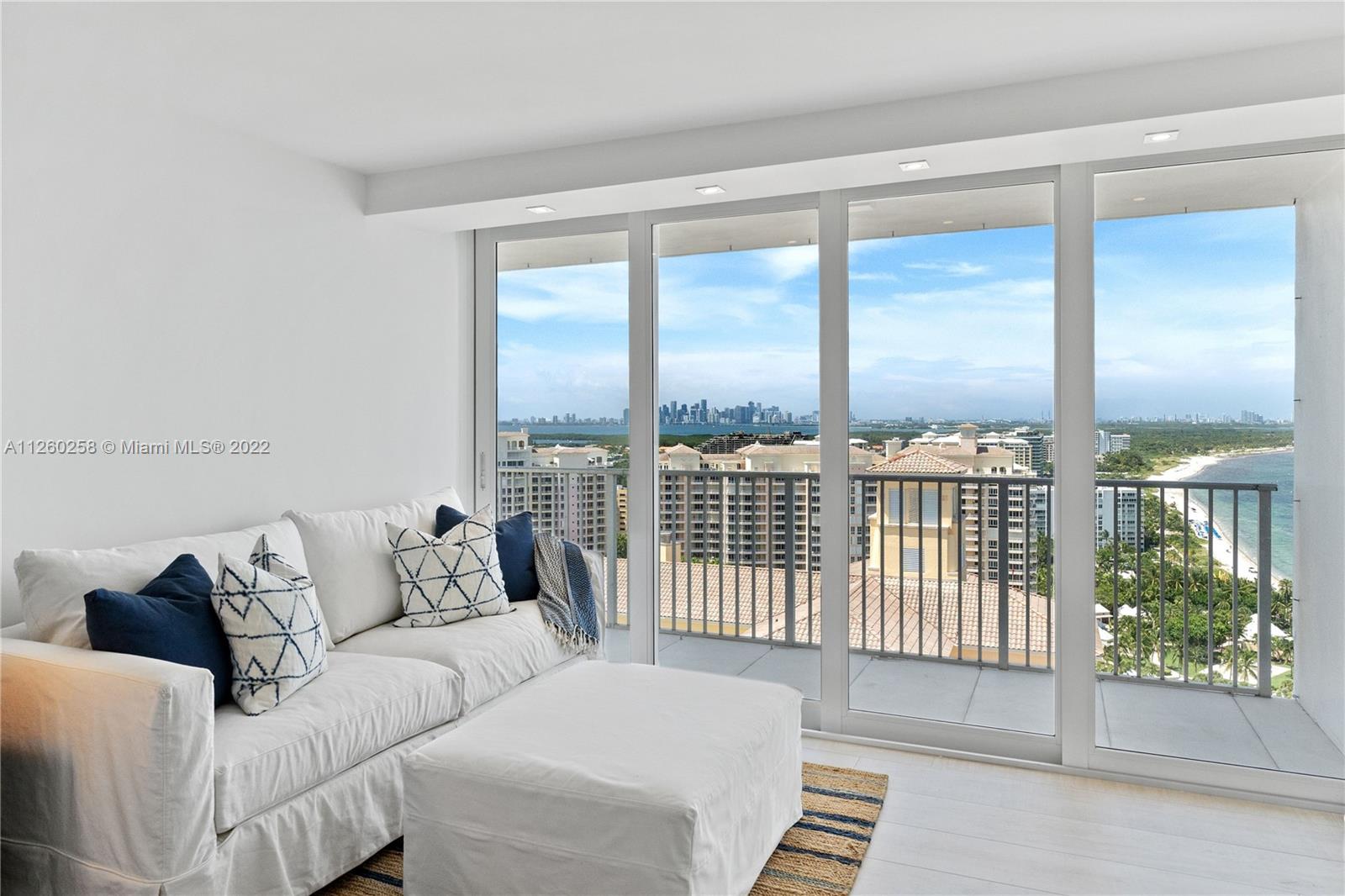 Spectacularly & completely remodeled corner oceanfront unit in best "H" line at Casa del Mar. Unobstructed 270 degree views to Atlantic Ocean, dwntwn Miami, South Beach and beyond! No expense spared in this large 3,120 sq.ft. renovated unit, 2 large wrap-around balconies, impact windows through out, 2 master suites both en suite, beautiful kitchen w/ stainless steel Jenn Air appliances, lge separate laundry room. Lge storage on unit floor, 1 covered parking. Electric blinds throughout |sheer and black outs in bedrooms. Amenities include direct & private beach access, heated pool, Lighted tennis courts, basketball, children's playroom, library, gated guard house +more! Best views and updates in this outstanding Key Biscayne bldg. No pets/golf carts per condo rules. Buyer must pay Sp. Assmt.